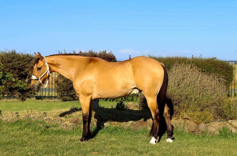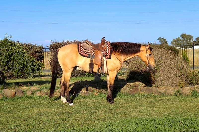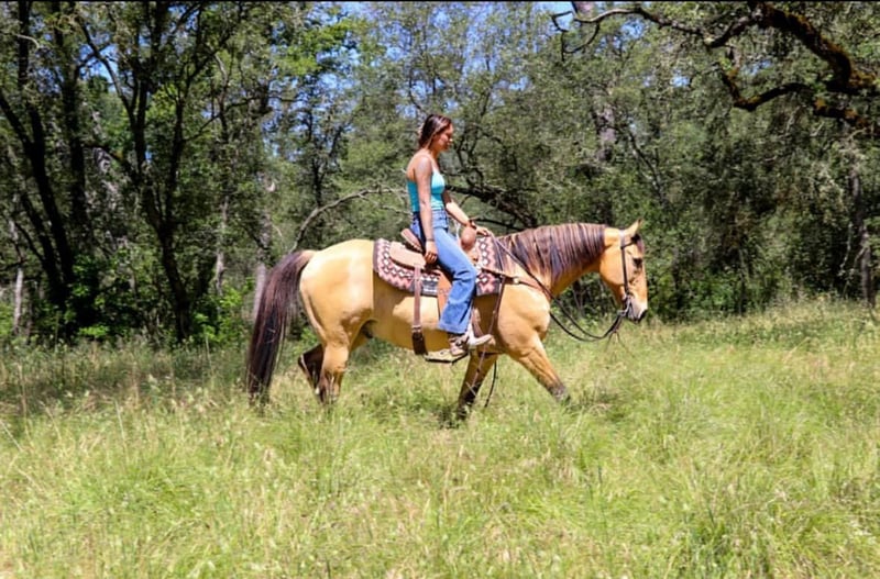 ONLINE AUCTION Place your bids at www.PlatinumEquineAuction.com Starting Bid $3500 Auction ends September 1st, 2024 Need a new saddle? Check out White Rock Saddles on our website or Facebook! Meet Akon a 14 year old 15 HH horse that turns heads and wins hearts. With his stunning buckskin coat that shines with a natural luster, Akon is the epitome of beauty and elegance. This exquisite horse is not just a pretty face. Akon is exceptional on the trails, tackling any terrain with confidence and ease. Whether it’s dense forests, rocky paths, or water crossings, Akon moves forward with determination and poise. His sure-footedness is comparable to a mountain goat, making him the perfect partner for adventurous trail rides. His extensive experience on the ranch has honed his skills, making him adept at gathering cattle even in the steepest and roughest country. In the arena, Akon is a sight to behold. He is fancy broke and knows his leads, offering a smooth, comfortable lope that is a joy to ride. His transitions are seamless, and his stops are sharp, responding directly to your seat. Akon collects his head beautifully and is light and responsive to both your hands and legs. He has also been started on barrels and poles, showing incredible potential to excel in these areas. Akon is the ultimate multi-tasker. One day he can take you on a leisurely trail ride, the next he can compete in a gymkhana, and then finish the day by gathering cows. His work ethic is unmatched; he goes all day long without a hint of quitting. Akon thrives on having a job and puts his heart into everything he does. Due to his responsiveness and quick-footed nature, Akon is best suited for an intermediate rider and up or a home with a trainer. His high level of training and sensitivity make him an exciting ride for those who can match his energy and skill. Akon is well-mannered and easy to handle. He stands patiently for saddling, bridling, bathing, grooming, blanketing, and the farrier. He loads effortlessly into a trailer, ready to go on any adventure. Akon can even be ridden bridleless and bareback, showcasing his versatility and solid training. If you’re looking for a horse that combines beauty, skill, and an incredible work ethic, Akon is the perfect choice. Don’t miss the chance to own this amazing buckskin gelding. He’s ready to be your next star, whether on the trail, in the arena, or working on the ranch. Experience the elegance, skill, and versatility of Akon firsthand. Arrange a visit today to meet Akon. Contact KW Ranch Kamryn 530-852-2032. Located in Pleasant Grove, CA. ONLINE AUCTION Place your bids at www.PlatinumEquineAuction.com Starting Bid $3500 Auction ends September 1st, 2024 Need a new saddle? Check out White Rock Saddles on our website or Facebook!