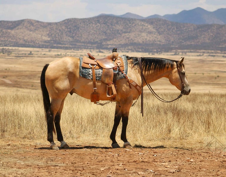 ONLINE AUCTION Place your bids at www.PlatinumEquineAuction.com Starting Bid $3500 Auction ends July 13th 2025 Need a new saddle? Check out White Rock Saddles on our website or Facebook! Once-in-a-Lifetime Buckskin Gelding!!! Zip is a registered APHA, beautiful buckskin gelding, standing 16h and he is a 2010 model. If you’ve been searching for the dream horse — the kind that checks every box and then some — look no further. This stunning Buckskin gelding is the total package. Raised and used on the same working ranch his entire life, he’s seen it all and done it all. From gathering big country to sorting pairs, doctoring in the pasture, loading trucks at the feedlot, used in parades to carry flags, giving lessons in the arena, ranch horse classes and ranch rodeos. This gelding knows a full day’s work and handles it with quiet confidence. He’s fancy broke, soft in the face, neck reins with ease, and moves off your legs like one should. He’s been trail ridden all across the country, seen every kind of terrain, traffic, wildlife — nothing phases him. Safe, safe, SAFE for absolutely anyone — whether you’re putting a beginner on him or using him every day for ranch work, he’ll take care of his rider. Not only is he handy and dependable, but he also has the sweetest puppy-dog personality you could ask for. He loves attention, meets you at the gate, and is always the first to come say hello. Just an easy, kind soul who enjoys being around people and is a true pleasure to handle on the ground. This is a horse you can catch anywhere, anytime — no tricks, no quirks, no bad habits. He’s sound, sane, and solid in every way. The kind you don’t see come up for sale often, and when they do, they don’t last long. Buy with confidence — this is a one-of-a-kind gelding that will turn heads and win hearts wherever he goes. Everyone who’s seen him loves him — and you will too. Zip sells with current x-rays. For more info call Kyle at Thunder Valley Ranch 402-910-6476 We invite anyone to come see him in person in Nogales, AZ. ONLINE AUCTION Place your bids at www.PlatinumEquineAuction.com Starting Bid $3500 Auction ends July 13th 2025 Need a new saddle? Check out White Rock Saddles on our website or Facebook!
