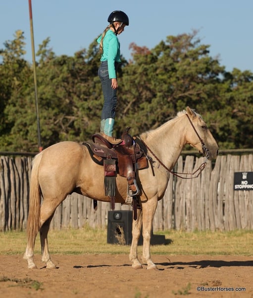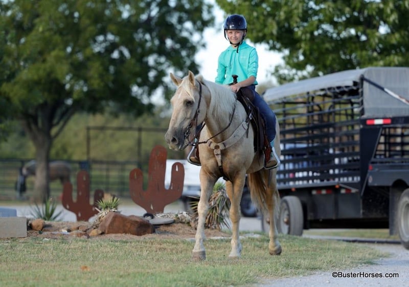 ONLINE AUCTION Place your bids at www.PlatinumEquineAuction.com Starting Bid $3500 Auction ends September 15th, 2024 Need a new saddle? Check out White Rock Saddles on our website or Facebook! If you want your kiddos to be outside – and you want them to be harassing you daily to saddle their horse – then you need MOJO!!! Mojo is a 14.2H, 15 year old gelding! Mojo is on the tiny little short list of horses that fits on one hand… that my own daughter has rode in downtown. He has seen thousands of miles and its pretty hard to find something that bugs him in the least bit – loud motorbike with no muffler behind him…no problem – crowds attacking him wanting to pet him,…perfect! Mojo could care less whats going on around him, while still being alert and aware, and is about as safe as a little horse as we have had in a long time. He totes around a tarp and a flag no problem. He rides exceptionally comfortable and uncomplicated, super simple point and shoot style, great neck rein, great stop, and the comfiest little jog, and smooth, cadenced, and most balanced lope you could ask for! If your wanting your kiddos to just take off and trot and lope around with confidence and no fear, this is the one you need! He would also be great for anyone wanting a confidence booster, or just a really comfortable smooth gaited horse to enjoy riding! He is large bodied enough to tote just about anyone around, but is still a lower to the ground, easy size that anyone can feel safe and comfortable on. This little guy also goes through the barrels and poles really well! This is the starter all-around horse for the whole family that everyone is always looking for! Please call us anytime with any questions about Mojo! Mojo was barefoot in this video – but was just shod this weekend, and next week he will have his teeth done by our equine dentist and at that time his ears will be preemptively treated for ticks, and his sheath will be cleaned. He was also just power pack wormed. He is good to shoe, has great large hard hooves and also goes well barefoot – if his new owner prefers him to be barefoot, we can have his shoes pulled and trim him prior to him heading to his new home. He will arrive at his new home up-to-date and ready to go to work! We are experienced, knowledgeable sellers, and we can help with quickly arranging affordable shipping to any buyer’s location – we have experience shipping worldwide – including regularly to Hawaii, Canada, Mexico, Europe, and South Africa.Check our website for buyer reviews, additional videos, pics, info, etc: https://busterhorses.com/Mojo ONLINE AUCTION Place your bids at www.PlatinumEquineAuction.com Starting Bid $3500 Auction ends September 15th, 2024 Need a new saddle? Check out White Rock Saddles on our website or Facebook!
