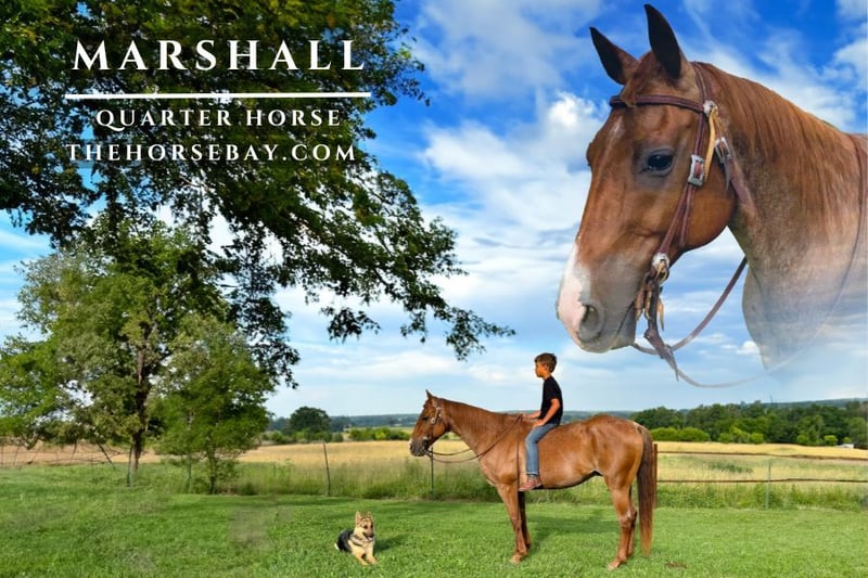 OPEN BIDDING ON THEHORSEBAY,COM. SALE ENDS ON 08/21 @ 5PM CT. More information is available on the website, including an UTD vet inspection, Coggins, video, images, and the owner's contact information to ask questions, request information, or make arrangements to come to visit. Marshall is a 15-year-old red roan quarter horse gelding standing 14.3. Marshall is a handy broke and rides around nicely. He has been trail-ridden all over, gathered cattle, and checked fences. He has a nice one-hand neck rein and a big stop. He also has a nice slow trot and an awesome short lope. He lopes big and small circles with the correct leads he backs up and side passes nicely. Marshall lunges both ways. Also, he is a seasonal trail horse, or you can put him to work. This fancy gelding is a pleasure to ride. Marshall is always easy to catch and stands great for the farrier.