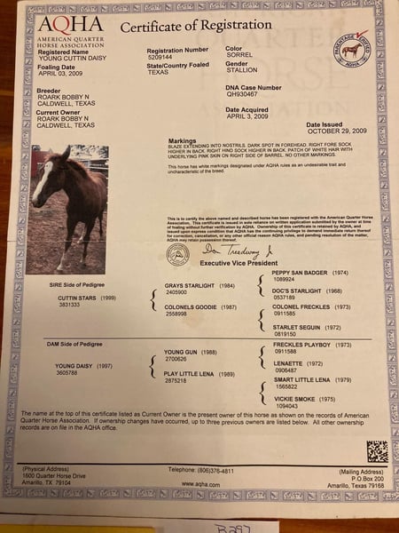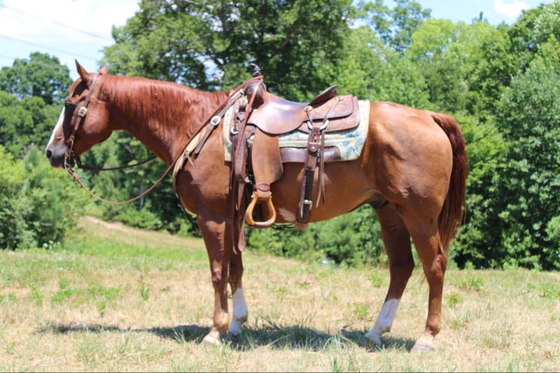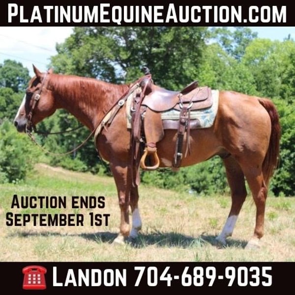 ONLINE AUCTION Place your bids at www.PlatinumEquineAuction.com Starting Bid $3500 Auction ends September 1st, 2024 Need a new saddle? Check out White Rock Saddles on our website or Facebook! Colonel is a 15h 15yr old Quarter horse gelding with impeccable breeding going back to Peppy San Badger , Smart Little Lena and Colonel Freckles. Colonel is the complete package. He is a 10-mover with three balanced and rhythmic gaits. He has a quiet and sensible mind, the kind every rider and family wants. He has the kindest and friendliest personality, and to top it all off, he is as pretty as a picture. Colonel is a excellent head horse for any level of roper he scores like a rope and always leave out flat! He also is great on the trails he’s been on many over night trips in the mountains. What stands out about Colonel is that he can go to the roping arena and pack you down the trail safely! Feel free to come and take him for a spin anytime! Located in Cherryville, NC. Contact Maxwell Family Trail Horses Landon 704-689-9035. ONLINE AUCTION Place your bids at www.PlatinumEquineAuction.com Starting Bid $3500 Auction ends September 1st, 2024 Need a new saddle? Check out White Rock Saddles on our website or Facebook!