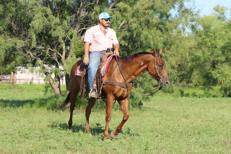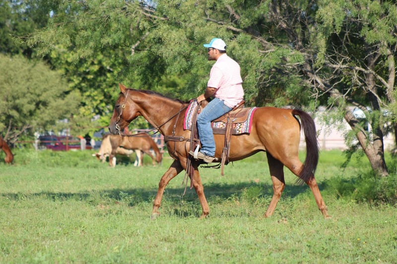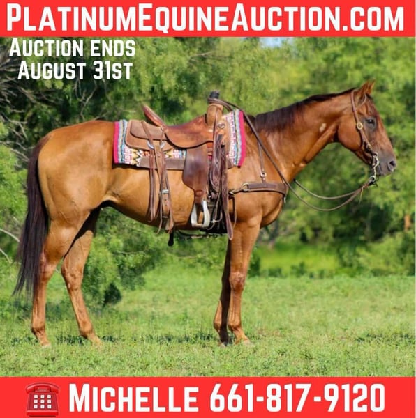 ONLINE AUCTION Place your bids at www.PlatinumEquineAuction.com Starting Bid $3500 Auction ends August 31st, 2025 Need a new saddle? Check out White Rock Saddles on our website or Facebook Meet Tigger – The Ultimate Family Ranch Horse! Tigger is the kind of horse everyone dreams of owning—a reliable, seasoned gelding with a heart of gold and a lifetime of experience under the saddle. At 17 years young and standing a solid 15.1 hands tall, this handsome guy still has plenty of great years ahead to share with your family. Proudly carrying the brand of the prestigious Diamond A Ranch in Arizona, Tigger has spent his life doing real-deal ranch work—trailing wagons, sorting cattle, and handling every kind of ranch task you can imagine. He’s not just broke—he’s one-handed broke and smooth as they come. We have used him at the sale barn to pen back cattle, load trucks and he’s even been used to catch cattle out on the hwy. Tigger is: • Gentle enough for beginners • Experienced enough for any job • A favorite of ranch hands and riders alike He’s sure-footed, confident in tough terrain, and a total pleasure to ride. Whether you’re on the trail, crossing water, brushing through thick cover, or riding over bridges—Tigger handles it all with ease. In the arena? No problem! He walks, trots, and lopes smoothly in circles. Carrying a flag? Yep, he’s good with that too. Perfect for the Whole Family! Tigger has been ridden by all ages and skill levels—mom, dad, grandma, grandpa, and the kids—and every single one has fallen in love. He’s steady, kind, and truly worth his weight in gold. Transportation? We’ve got you covered! We work with trusted haulers worldwide and can help arrange safe delivery to: anywhere in the U.S., Canada, Mexico, Hawaii, Alaska …and anywhere in between from Stephenville, TX. Come meet Tigger in person—or if you’re not local, schedule a FaceTime showing! If you have any questions contact Michelle with M$ Performance Horses 661-817-9120. ONLINE AUCTION Place your bids at www.PlatinumEquineAuction.com Starting Bid $3500 Auction ends August 31st, 2025 Need a new saddle? Check out White Rock Saddles on our website or Facebook