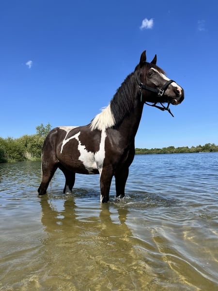 Voor een 10⭐️ plek beschikbaar voor een nieuw.🏡 LC Tecum Power Scamps is een bijna 2,5 jarige APHA ruin, geboren 10-05-2023. Mavi (roepnaam) is al van mij sinds hij 3 weken oud was, dus alles is bekend. Hij is inmiddels al heel wat gegroeid maar blijft voor mij helaas te klein, hij is nu ongeveer zo’n 140 cm hoog. Mavi is dagelijks in de hand geweest sinds 8 maanden leeftijd. Hij is voor zijn leeftijd aardig bomproof! (Groot) verkeer is voor hem geen probleem.🚛 Is braaf bij de hoefsmid en kan mega genieten van een uitgebreide poetsbeurt. Mavi is up to date met zijn vaccinaties.💉 Recent is hij pas geruind, niet omdat hij hevige hengstengedrag vertoonde maar omdat hij heel graag in een (gemengde) kudde staat. Hij speelt graag en kan met ieder paard overweg. Ik zie Mavi graag bij een recreatieve ruiter terecht komen, die lekker met hem op buitenritten wil en hem lekker paard laat zijn. Momenteel staat hij 24/7 buiten. Maar s’ nachts op stal is ook geen probleem voor Mavi. Mavi staat NIET in de weg, handelaren hoeven dus ook niet te reageren. Hij gaat enkel naar een beter huis als wat ik hem op het moment kan bieden.🐴 Keuren mag, kosten koper.📋