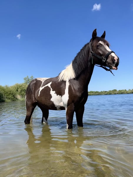Pour une place 10⭐️ disponible pour un nouveau.🏡 LC Tecum Power Scamps est un hongre APHA de presque 2,5 ans, né le 10-05-2023. Mavi (surnom) est avec moi depuis qu'il a 3 semaines, donc tout est connu. Il a déjà beaucoup grandi mais reste malheureusement trop petit pour moi, il mesure maintenant environ 140 cm de haut. Mavi a été manipulé quotidiennement depuis l'âge de 8 mois. Il est assez solide pour son âge ! (Gros) trafic ne lui pose aucun problème.🚛 Il est sage chez le maréchal-ferrant et apprécie énormément un bon toilettage. Mavi est à jour dans ses vaccinations.💉 Il vient juste d'être castré, non pas parce qu'il montrait un comportement de hongre intense, mais parce qu'il aime beaucoup être dans un troupeau (mixte). Il aime jouer et s'entend avec tous les chevaux. Je souhaite que Mavi trouve un cavalier récréatif, qui veut faire des balades avec lui et lui permettre d'être un vrai cheval. Actuellement, il est dehors 24/7. Mais passer la nuit au box ne pose également aucun problème pour Mavi. Mavi ne gêne PAS, donc les commerçants n'ont pas besoin de répondre. Il ira uniquement dans une meilleure maison que celle que je peux lui offrir actuellement.🐴 Les visites sont autorisées, frais à la charge de l'acheteur.📋