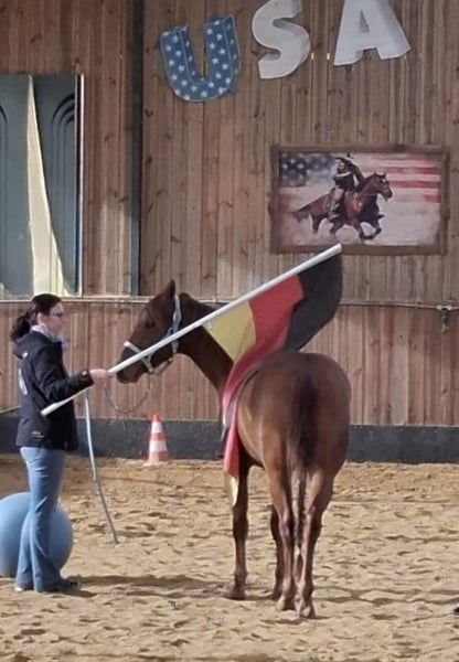 Ausdrucksstarker Wallach mit viel Talent für den großen Sport. Whizzy hat eine super Abstammung mit besten Voraussetzungen für Reining oder Cow Horse Klassen. Er hat elegante Bewegungen, ist leichtfüßig und sehr aufmerksam. Bis jetzt nur Bodenarbeit und Longe. Er ist im EWU-Jungpferdeprogramm einbezahlt, wird regelmäßig entwurmt und geimpft.