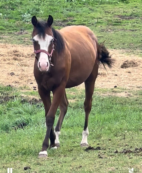 “Dakota” Sire: Spooks Gotta Whiz Dam: granddaughter of Smart Chic Olena (see papers below) Yearling going on two. Has had lots of handling and loves people. Lunges and has a saddle on his back. Very flashy. This little horse can scoot! Would make a fabulous reining or barrel racing prospect! $20,000 CANADIAN Located in Dundas Ontario