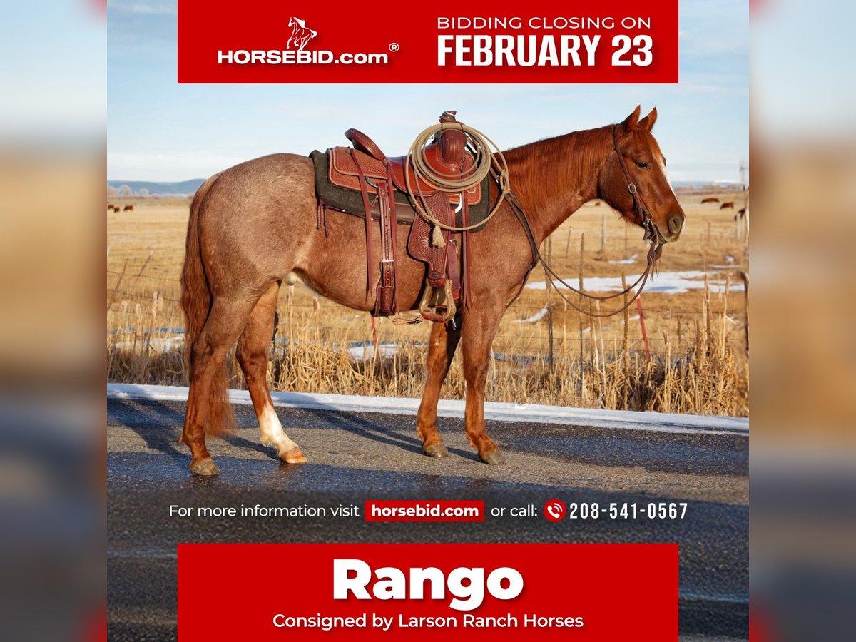 💎 𝐓𝐇𝐄 𝓓𝓲𝓪𝓶𝓸𝓷𝓭 𝐒𝐇𝐎𝐖𝐂𝐀𝐒𝐄 💎 Happening now thru MONDAY | FEBRUARY 23rd - Available EXCLUSIVELY on HorseBid's website! For more details and to register visit: www.Horsebid.com CONSIGNOR CONTACT: Larson Ranch Horses 208-541-0567 LOCATION: St. Anthony, ID BREED: AQHA REGISTERED: Yes REGISTERED NAME: DF DOCS METALLIC OLENA COLOR: Red Roan HEIGHT: 14 AGE: 3 GENDER: Gelding Comes with Clean and Current PPE. Meet Rango! The kind everyone hopes to find. He is an exceptional red roan gelding with the pedigree and mind that would fulfill any riders’ dreams. He has the looks, build, and disposition that one can only hope to find in a partner and friend. Rango always wants to be your best friend, and is a sucker for love and attention. He is thick and American made. With a stout build at 14hh. Rango is quiet to be around, and a gentleman on the ground. He’s been exposed to almost anything you can imagine including whips, tarps, flags, pool noodles, bags, ropes, or whatever else might look strange to a horse. Beyond being quiet, Rango is really soft in the face and throughout his body, and is a super pretty mover in the arena. The softness throughout his body makes him a great candidate to go on to compete at the next level. He wants to ride slow, and relaxed. Rango rides with his head low, collects up nicely, and stops on a loose rein. He has a beautiful turnaround, and handles quietly and on balance. He picks up both leads nicely and lopes off with ease. Rango has all the buttons to making him user friendly, and is forgiving of mistakes. He’s no stranger to work and has been used in different ranch capacities that include roping, doctoring, gathering, working gates, shipping cows, etc.. Rango has also been started out of the box tracking the smarty. He knows how to handle himself in different environments, and situations. Rango also really shines, and excels being out on the trails. He’s calm, steady, and quiet while handling himself in rough country. Maneuvering with ease over bridges, bogs, crossing water, etc… Rango has been ridden by different levels of riders, and handles new situations with ease. We believe he would really go far in trail versatility classes, or as a roping or ranch prospect. His potential and possibilities are never ending. Whether you’re on the ranch, in the arena, up in the mountains, or carrying our nations flag proud, everyone notices him for his looks, and quiet demeanor. Rango is the best, and favorite in the barn. We couldn’t be more privileged and proud to offer him. For more information, Text or Call (208)541-0567.