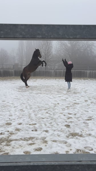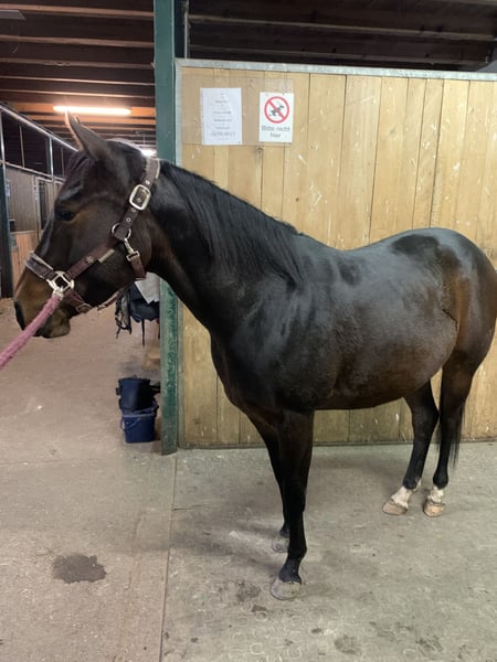 ✨Smart Podoco Gun✨ Schweren Herzens suche ich für meinen geliebten Wallach, aus persönlichen Gründen die ich Privat erzählen kann, ein neues zuhause.🥺 (dringend) 🐴geb. 03.01.2023 🐴American Quarter Horse 🐴Wallach 🐴5 Panel n/n Ich habe ihn mit 10 Monaten von einer sehr netten Züchterin gekauft. Da durfte er schon Traktoren, Kinder, Hunde, Katzen usw. kennenlernen. Beim Tierarzt👩🏻⚕️ ist er stehts immer sehr brav. Zeigt sich immer neugierig und gelassen. Beim Hufschmied⚒️ auch sehr sehr brav. Er mag sehr gerne die Hufschmiedin mal zu ärgern mit knabbern, schlecken und bussi geben. Ansonsten Hufe geben kein Problem. Beim Anhänger🚗 fahren steigt er brav ein und fahrt brav mit. Er braucht jedoch seine zeit zum austeigen da er gerne beobachtet was passiert und mal aufgeregt ist bei neuer Umgebung. 🦄Sein Wesen: -Neugierig -Verspielt -Aufmerksam -Sozial (will mit jedem Tier spielen/freunde sein) -Anhänglich auch mal ungeduldig 🍀Was ich mir für ihn wünsche: -Liebevolles zuhause -Liebe -Geduld -Abwechslungsreiche Arbeit (Spazieren, Bodenarbeit, Equikinetik usw.) -Feste Routine -Vertrauen ❌Was ich mir für ihn besten falls nicht wünsche: -Weiter Verkauf -Schulbetrieb -Stress Er wird von mir als roh Diamant verkauft da er nur im Schritt und Trab angeritten ist. Gallop wurde einmal an der Lounge und einmal frei gemacht, das er sehr gut gemeistert hat. 2 Ausritte im Schritt hat er auch schon gemacht. Dabei war er sehr neugierig, hat viel geguckt was passiert und stets vorsichtig. 📍AT🇦🇹 7000 Eisenstadt 9.🥕🥕🥕 mit gesamten Equipment (Baumsoler sattel, Zaumzeuge, Bosal, Zusatzfutter, Pad, Decke, Halfter uvm.)