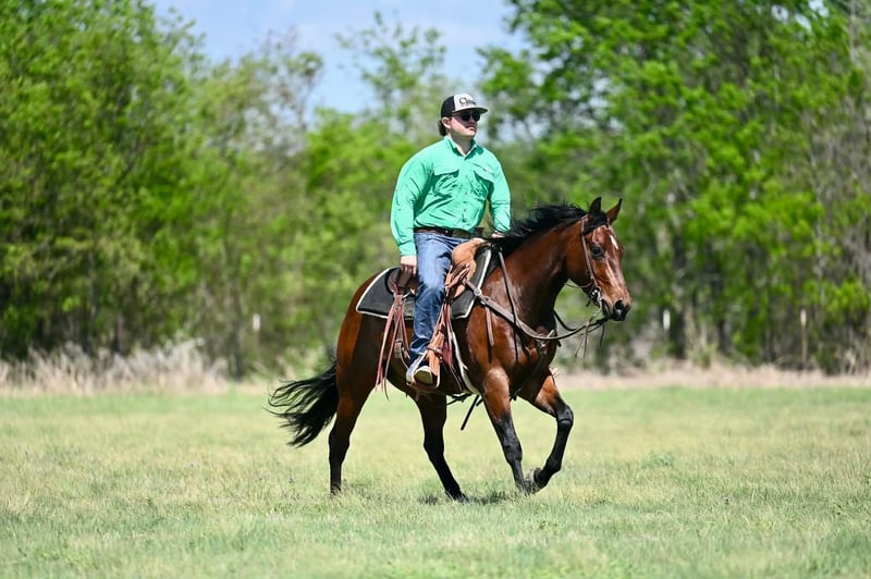 🌟𝑨𝒑𝒓𝒊𝒍 𝐀𝐋𝐋 𝐒𝐓𝐀𝐑 𝐋𝐈𝐍𝐄𝐔𝐏🌟 Happening now thru MONDAY | APRIL 6th - Available EXCLUSIVELY on HorseBid's website! For more details and to register visit: www.Horsebid.com CONSIGNOR CONTACT: Nate Ballerino Horse Co 254-716-9588 LOCATION: Waco, TX BREED: Qh REGISTERED: Yes REGISTERED NAME: Royal Mile COLOR: Bay HEIGHT: 14.2 AGE: 3 GENDER: Gelding This gelding sired by One Time Royalty was started in a cutting program and has since gone on to our program getting broke in the arena. We’ve used him to sort pairs and we’ve doctored a handful of calves on him. He takes both leads, is a big stopper, and turns both ways with ease. He’s handy, useful, and easy to be around on the ground. If you’re looking for a good-minded, broke gelding with a solid start, he’s one to take a look at. Contact Nate Ballerino for further information 254-716-9588. Nation wide shipping available.