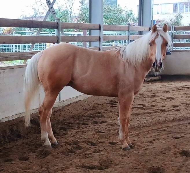 Vendesi castrone palomino di 2 anni, carattere freddo adatto a discipline western come il working cow, ma anche passeggiate cavallo generoso e disponibile sa stare in paddok e in branco per ulteriori informazioni contattateci per favore no perditempo.