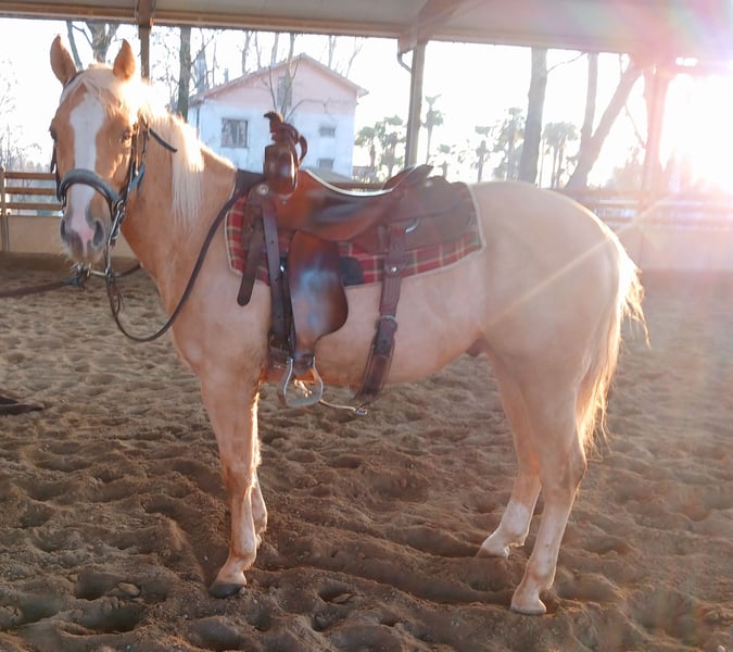 For sale: 2-year-old palomino gelding with a calm temperament, suitable for Western disciplines such as working cow, as well as for trail riding. A generous and willing horse that is comfortable in a paddock and social in a herd. Please contact us for more information. No time-wasters.