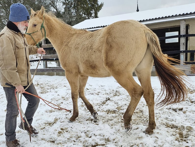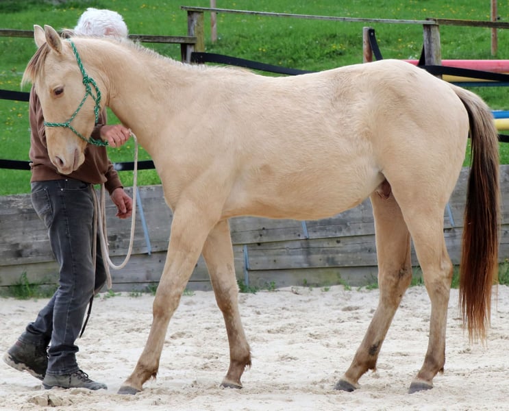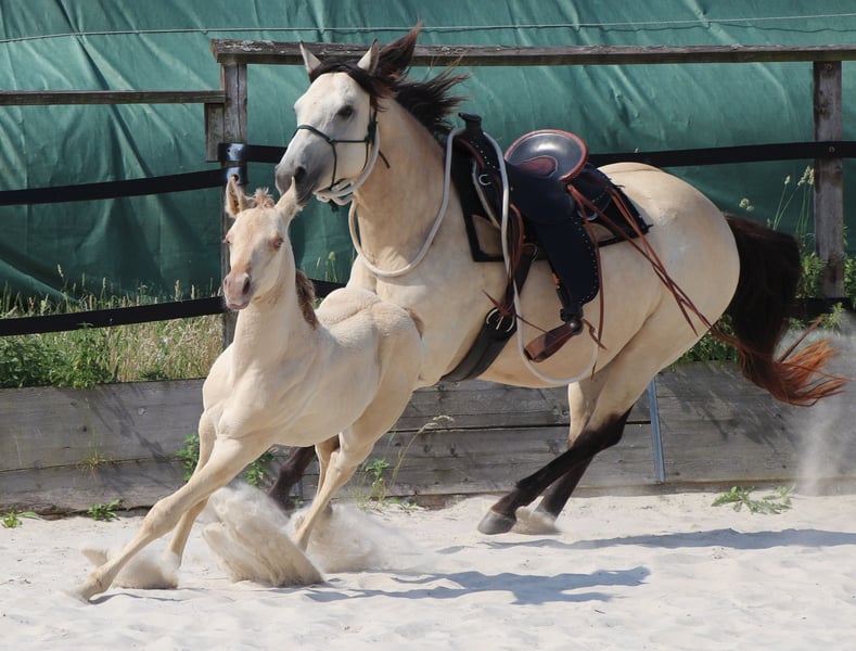 neugieriges Jungpferd in Amber Champagne Dun