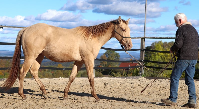 Ivo to wyrazisty młody ogier, który jest ciekawy od pierwszego dnia. Stanie się bardzo wiarygodnym partnerem na całe życie dla ambitnego zawodnika rekreacyjnego lub turniejowego. Jest on starannie przygotowany przez nas do jego przyszłego życia metodami Naturalnego Jeździectwa. Cieszy się życiem w otwartych stajniach na dużym pastwisku w mieszanym stadzie. Na naszej stronie http://pferdezucht-maxen.de/Ivo-Dunit-Maxen/ pod przyciskiem "Protokół treningowy" znajdziesz aktualny status szkolenia.