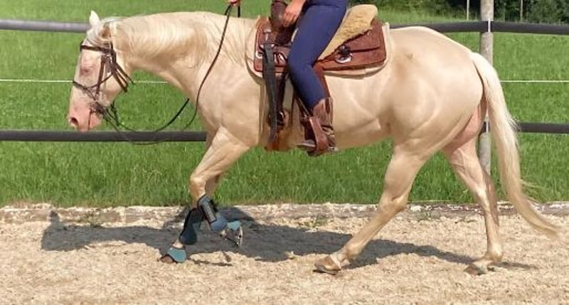 Our seven-year-old, approximately 155 cm tall Quarter Horse mare has been gently started under saddle at the age of four. She is a reliable partner for trail riding and has achieved numerous placements in Ranch Riding, Trail, and Horsemanship. Not only does her appearance impress, but also her exceptional character and rideability. With the right rider, she takes immense joy in her work and gives her all—she can also confidently go out on the trail alone with a less experienced rider—rearing, bucking, or bolting are not in her repertoire. She is easy to handle on the lunge line or double lunge and quickly teaches beginners the correct lunge line technique. She is very attuned to individual people and gives her best when she finds her person and they provide her with a clear and fair direction. She is sensitive and can be ridden with subtle weight aids, making her not exclusively suitable for a complete beginner. She has never been sick, has excellent X-rays, straight legs, and is very uncomplicated to keep. Her pedigree includes names like Money Trail, Big Chex to Cash, Smart Chic Olena, and Magnum Chic Dream. She has already had a foal, which became a two-time champion in the SQHA Futurity Halter class and has developed into a reliable, beautiful, and rideable riding horse. For more information and videos, please feel free to contact us. Location: Switzerland/Zürich Oberland, approximately 30 minutes from Germany.