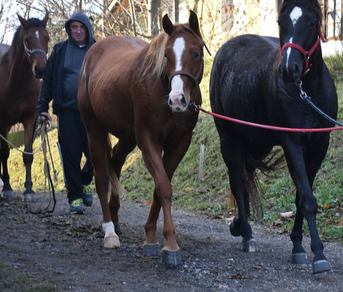 Quarter Horse Gelding for Sale (2023) We are offering a 2023 Quarter Horse gelding, chestnut color. He is accustomed to basic handling and trailer loading. The gelding is used to living in a run-in stable with other horses, as well as box stall life, so he adapts easily to different management systems. Pedigree: Sire line: Smart Chic Olena Dam line: Taris Lightning Bar Current height: approx. 153 cm (and still growing). He has a valid passport. Location: 9244 Sv. Jurij ob Ščavnici, Slovenia Approximately 15 minutes’ drive from the Austrian border. Transport can be arranged for up to 8 hours of travel. 📞 More information: Phone / WhatsApp: +386 41 903 719