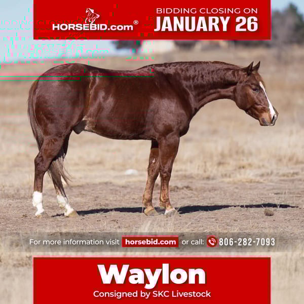 𝐉𝐀𝐍𝐔𝐀𝐑𝐘 ⭐️𝑨𝒍𝒍 𝑺𝒕𝒂𝒓 𝑳𝒊𝒏𝒆𝒖𝒑⭐️ Happening now thru MONDAY | JANUARY 26th - Available EXCLUSIVELY on HorseBid's website! For more details and to register visit: www.Horsebid.com CONSIGNOR CONTACT: SKC Livestock 806-282-7093 LOCATION: Canyon, TX BREED: Quarter REGISTERED: Yes REGISTERED NAME: Beach Bummm * Sired by Sannman COLOR: Sorrel HEIGHT: 14.1 AGE: 4 GENDER: Gelding Beach Bumm (aka “Waylon”) is a 14.1-hand sorrel gelding that is the definition of handy, gentle, and talented. He is super-duper broke, quiet minded, and incredibly safe—the kind you can trust every day, no matter the job. He has been roped on by youth, ranched on by youth, and is very capable when it comes time to sorting and taking care of cattle. Waylon reads a cow naturally, stays soft and responsive, and is handy enough to make any job easier—whether you’re opening gates, dragging calves, or stepping into the sorting pen. Waylon is awesome to rope on and has the kind of foundation that leaves the door wide open for him to finish into a wonderful breakaway horse or junior rodeo horse, suitable for any level of youth. He stays calm, honest, and forgiving, making him a great confidence builder both in and out of the arena. He is also excellent to ride outside. He crosses water willingly, is confident and safe, and is sure-footed in rocky country, making him just as enjoyable on the trail or ranch as he is in the arena. He has a huge heart, gobs of try, and truly doesn’t know what quit is. He shows up every day ready to work, stays willing and honest, and always gives his rider his best. Waylon is royally bred and eligible for the Gold Buckle. He is sired by Sannman, earner of $200,847 and producer of over $4,025,730, and out of “Purrrfect,” a mare that earned over $67,000, giving him a pedigree that matches his talent and mind. He is super sound, solid in every way, and stays consistent even with time off. Easy to saddle, easy to ride, and always willing, he has a big personality that makes him fun to be around and a favorite in the barn. To top it all off, he’s very cute, well-made, and the perfect size to get on and off all day long. A truly nice, honest gelding that combines gentleness, talent, pedigree, heart, and real-world usefulness—the kind everyone is always looking for.