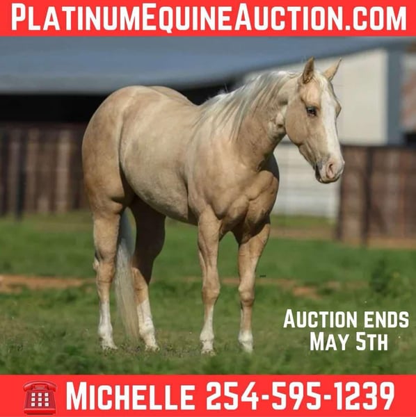ONLINE AUCTION Place your bids at www.PlatinumEquineAuction.com Starting Bid $3500 Auction ends May 4th, 2025 Need a new saddle? Check out White Rock Saddles on our website or Facebook! Shes Chex and Loaded Rory, is a super sweet and beautiful 3 year old mare, she is ready for any job! She’s definitely a head turner! 14.1 hands tall, and has a sweet personality. Not marish at all, she can live in a barn stall or out in pasture and gets along with everybody! Rory can ride out alone or in groups on trail, there’s no funny business about her. She loves water, will climb hills and go over logs! She will walk out or go nice and easy, whatever speed you ask her to go. She saddles quietly, bathes great, loads in the trailer, and great for the farrier as well. She was even in a 4th of July parade as a 2 year old! Rory has been so many places she is such a fun one to ride! I have tracked some calves on her, she has some cow to her and loves to track! Take her to the roping pen or show pen she is suited for just about anything. Rory has been hauled extensively on long and short hauls and has seen the sights! Not much bothers this mare, she’s been to rodeos with firework shows and hauled across the country! She will be a jam up mare whatever the job may be! She would excel in roping events, ranch riding, reining, and trail! Her parents and grandparents excelled in the reining show pen and the roping pen! She has money earners all across her papers, no doubt she can be one too! She circles really pretty at the walk, trot, or lope, picks up both leads and is picking up a really nice lead departure! Rory turns around nicely, and has a good stop to boot. Up to date on shots, teeth, deworming, and being shod. She loves attention, to be groomed and loved on. Don’t miss out on this beautiful, high quality type of mare! Located in Stephenville, TX. Shipping available anywhere! Including Hawaii, Canada, Mexico or anywhere in between. Contact Michelle Ouellette 254-595-1239 Located in Stephenville, TX. ONLINE AUCTION Place your bids at www.PlatinumEquineAuction.com Starting Bid $3500 Auction ends May 4th, 2025 Need a new saddle? Check out White Rock Saddles on our website or Facebook!