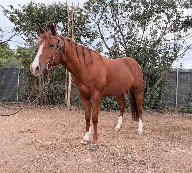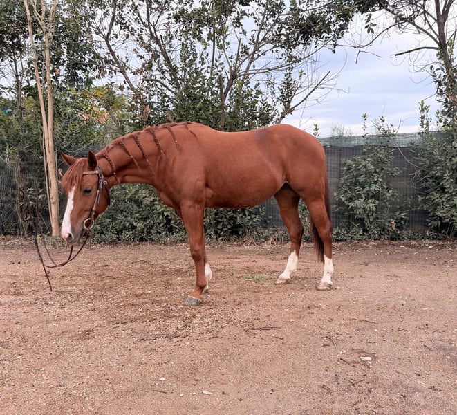 **Vendo American Quarter Horse Castrone – Anno 2022** Se sei alla ricerca di un cavallo versatile e di qualità, questa è un'opportunità da non perdere! Caratteristiche principali: - Razza: American Quarter Horse - Genere: Castrone - Anno di nascita: 2022 - Nome: Mega - Altezza al garrese: 145 cm - Specializzazione: Reining Mega è un giovane cavallo con un temperamento equilibrato e una buona predisposizione per il reining. È stato cresciuto con cura e attenzione, mostrando ottimi movimenti e una forte capacità di apprendimento. Ideale per chi desidera un compagno affidabile e performante nel mondo del reining o per chi vuole iniziare a competere in questa disciplina. Per ulteriori informazioni o per organizzare una visita, non esitare a contattarmi.