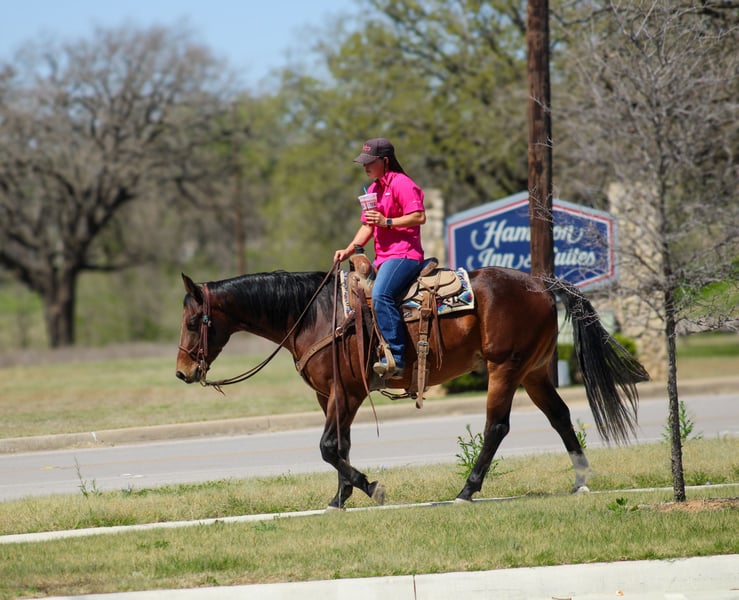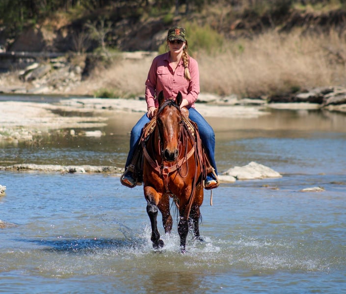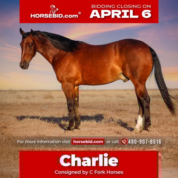 🌟𝑨𝒑𝒓𝒊𝒍 𝐀𝐋𝐋 𝐒𝐓𝐀𝐑 𝐋𝐈𝐍𝐄𝐔𝐏🌟 Happening now thru MONDAY | APRIL 6th - Available EXCLUSIVELY on HorseBid's website! For more details and to register visit: www.Horsebid.com CONSIGNOR CONTACT: C Fork Horses 480-907-8516 LOCATION: Amarillo, TX BREED: American Quarter Horse REGISTERED: Yes REGISTERED NAME: San Jo Karen COLOR: Bay HEIGHT: 14.3 AGE: 4 GENDER: Gelding Some horses are handy. Some are safe. And then every once in a while you get one that quietly raises your standards for what a good horse should be. San Jo Karen is the kind. This 2022 Bay AQHA Gelding is the one you find yourself saddling when there is work to do and just as often when there is not. He meets you at the gate, puts his nose in your hands, and follows you around like he has always been yours. Extremely kind. Extremely people oriented. The type that would climb in the pickup if you left the door open. He takes the stress out of saddling one up for a ride and reminds you why you like horses in the first place. And his pedigree backs it up—He is By BOON SAN, a proven son of HIGH BROW CAT, and and out of a mare carrying deep rope horse influence through MR GOLD BUCKS, an AQHA World Heading reserve champion with over 460 points, along with the respected QUEEN JOE JACK line. He comes from the legendary Pitzer Ranch and proudly packs their brand on his hip. A program known for raising practical, durable horses that stay useful for a long time. Charlie has been used extensively on a yearling cattle operation and understands real work. Tight alleys, trucks idling, cattle pushing the gate. Through all the commotion, he stays quiet and stays where he belongs. He has a lot of natural cow sense without getting wired or overthinking. The kind that locks onto one and handles situations as they unfold. He makes the day go smoother no matter what you point him at and is a blast when it comes time to sort. Outside he is exactly what people hope they are buying and rarely are. Completely trail and traffic safe. He crosses water willingly and is unfazed by cars, semi-trucks, dogs, or pedestrians. Haul him somewhere new, unload, step on, and go ride. No lunging. No pep talks. No last-minute life insurance updates required. Point him down a rocky draw or ease him across a shallow creek and he will pick his way through it like he is responsible for getting both of you home in one piece. He takes care of whoever is on his back. Just honest, steady travel that builds confidence. We have even ridden him through a busy HTeaO drive-through just for fun. He stood there patiently while traffic moved around him and strangers walked up to pet him like he was part of the afternoon entertainment. He handled the whole deal like it was just another stop along the way & has more sense in public than most folks with driver’s licenses. Charlie was started in a cow horse program, so you already know that in the arena he is broke enough to make you grin. He has a jog and slow lope that are just flat comfortable. The kind you can sit all day without bracing or holding your breath. Horsemen with bad backs, listen up. This one will make you want to ride longer than you planned. He carries himself naturally, turns around, side passes with feel, rides right between your bridle reins, and when you say whoa he wants to melt into the ground and stay there. He has the foundation and way of going to step right into versatility ranch horse, ranch riding, or ranch trail shows for someone who enjoys a little fun on the weekends. He is a true light-switch type. Ship cattle in the morning. Turn around and let your spouse, kids, or guests enjoy him that afternoon. Haul out to a weekend show. Pitch your reins to him going down the trail, and just enjoy the ride. Whatever, wherever. He is balanced, correct, and stands at a perfect 14.3 hands. Has plenty of shape and substance, with the kind of build that holds up when a horse is actually used. Charlie has been well cared for his entire life and it shows in the way he looks, moves, and handles. Up to date on all care and his records will go with him. We genuinely enjoy this horse and are confident he will be appreciated anywhere he goes. This is the kind that makes your day easier and the ride a little more enjoyable. Just plain good. Need help with hauling? We are happy to assist buyers in coordinating transportation. Charlie is located in Amarillo, Texas. For more information or to visit about him, call or text Cheyenne at 480-907-8516.