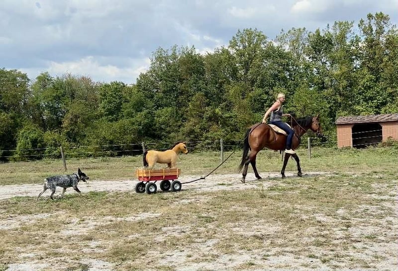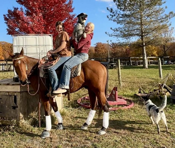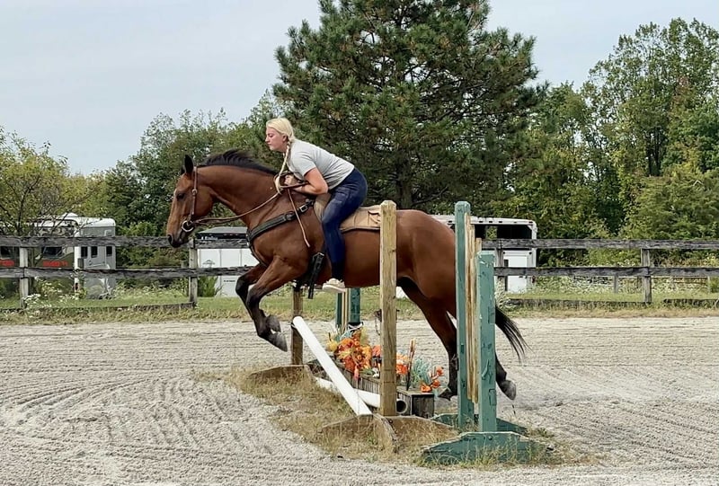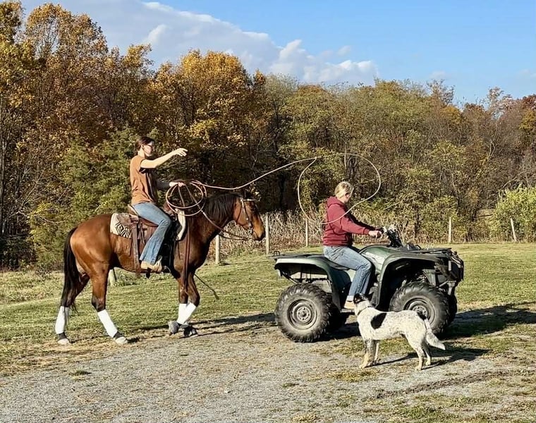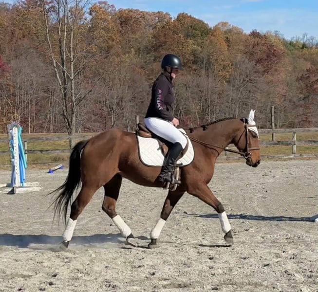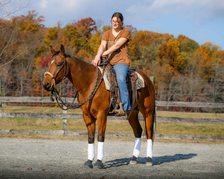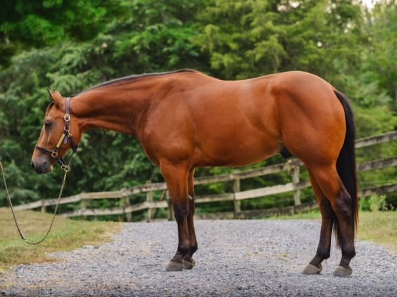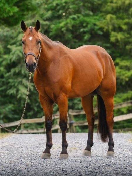 🎲𝓽𝓱𝓮 𝐑𝐈𝐃𝐄𝐑'𝐒 𝓒𝓱𝓸𝓲𝓬𝓮🎲 Happening now thru MONDAY | NOVEMBER 17th - Available EXCLUSIVELY on HorseBid's website! For more details and to register visit: www.Horsebid.com CONSIGNOR CONTACT: Triple R Horses 610-806-2613 LOCATION: New Holland PA BREED: AQHA REGISTERED: Yes REGISTERED NAME: Two Gun Whiz COLOR: Bay HEIGHT: 14.3 AGE: 3 GENDER: Gelding “Two Gun Whiz” aka “Ransom” is a three year old, 14.3hh, AQHA gelding who is a huge puppy dog, extremely versatile, and safe for the whole family! Are you looking for a horse to take you to the show pen, then the next day pack your kids or husband around in the ring or on the trails? Don’t be afraid of his age, Ransom is an old soul who loves to please and enjoys spending time with his humans. Not only is Ransom incredibly kind and honest, he has a spectacular pedigree full of top quality, money earning horses. Here is a unique gelding, with something for everyone!!! In the barn, Ransom has zero bad habits. He is as quiet as a mouse in his stall and never asks for anything. He is extremely gentle to work around and safe for beginners and children to work with, run around, groom, etc. He could care less about a busy barn alley with pups running all around him. Ransom stands on the cross ties to be groomed, tacked, bathed, and absolutely loves attention. He will fall asleep while having his mane braided. You can play all around him, sit on his back while grooming him, crawl under him, he is just happy to be involved. Ransom is a baby sitter in the pasture, he gets along with every single horse and causes absolutely zero drama. He is the first one to approach you in the pasture. He can live out in a mixed herd and also doesn’t mind living alone. His pasture has a large section of woods and a creek, and every single day, he takes himself for a stroll through the woods, and can even be found napping in a sunny spot in the middle of the woods. He is very independent and stress free. Ransom has great ground manners, and can be handled by anyone. Ransom absolutely loves trail riding and he is safe for anyone on the trails. I have been throwing guests on him for trail rides, and he takes care of his rider like an old pro. I would put my grandmother on him and trust that he will be safe, and gentle. Ransom will lead, follow, go alone and in groups. He is not the slightest bit spooky, and he will be a brave leader through obstacles when asked. He crosses water, bridges, logs, rocks, and is safe with my pups trailing his heels. We kicked up pheasant not even two feet from us in a field and I had an older, beginner lady on him, and even though my horse spooked and spun, Ransom didn’t even bat an eye. I couldn’t have asked for a better horse in that situation. We have also had deer jump out in front of us, and again, Ransom paid no mind. Ransom is the type of horse that you can throw into the middle or the back and his rider can ride on the buckle the whole time, he will follow the crew. He doesn’t jog to stay caught up, he doesn’t mind if the group leaves him. Ransom makes a great guest horse and would be an awesome camping partner. With his great demeanor and level of quietness on the trails, I could see Ransom being a fantastic hunt mount as well. Ransom rides western, english and bareback. He does not have a preference. He does not need to be in a routine. He can sit for weeks, tack up and go with no silly business. He is the type of horse that your kids could go climb all over in the pasture. He rides in a snaffle, shank, bosal, halter and lead, and a neck rope. I have even played around with completely tack less. He is the perfect combo of whoa and go, quiet and laid back, yet goes to work when asked. You can ride him with no spurs, or spurs. Two handed or one handed. He is responsive to your aids, yet knows when he has a child or beginner on him, he will dull his responses way down. How many three year olds are capable of doing that?! Not only is he extremely intelligent and loves to learn, he is also very forgiving and does not get up set if his rider is off balance or handsy. Despite Ransom being a reining/cow bred type of QH, he is actually very uphill, setting him up for versatility in every discipline. He has enough shoulder and neck to balance a kid, or go succeed in the english world! He has beautiful gaits, and he is very adjustable to each rider and discipline. Ransom has entertained many different riders in his time with me, he bonds nicely with each rider, whether new or have been riding him for a while. I truly feel that this horse was born broke. He has had a very easy start in life, he has not been drilled, he has not been pushed, he is just incredibly intelligent, and quick to learn. Another thing I love about Ransom is that I can pull him in from the pasture and throw him in a stall, in an empty barn and he doesn’t not pace or holler for his friends. He just simply does not care if he is alone or not. In the ring, Ransom will walk, jog, trot, lope, canter, gallop, knows his leads and has a lead change. He moves laterally off of leg, bends around your leg, has great lead departures, he will move his forehand and hind quarters, side pass, neck rein, ride solely off of your leg, started on a nice turn around and started on a slide stop. Bring your legs forward and he will go into reverse. You can ride him collected or on the buckle. You can adjust his head set for different styles of riding. Bring him down slowly through the gaits or ask for that big whoa. He is not going to stop hard or spin a beginner or kid off, he knows the difference in cues. When I tell you this horse is smart and unique, I mean it. He is soft in your hands, and pays attention to his rider. Yet doesn’t get confused nor upset when a beginner or kid is in his face, or using the reins to balance. His attitude is unbeatable. I do not get ride reining trained horses often, and I quite frankly don’t k