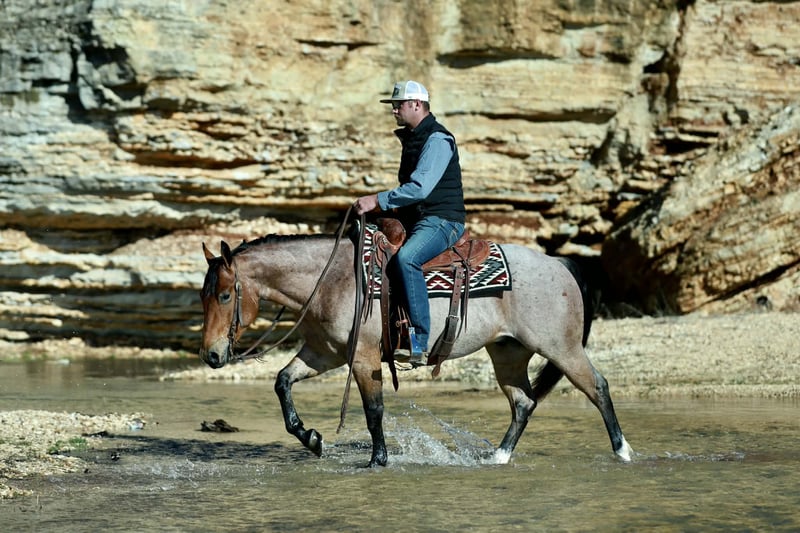 ⚜️𝐭𝐡𝐞 𝓔𝓵𝓲𝓽𝓮 𝐒𝐩𝐫𝐢𝐧𝐠 𝐂𝐥𝐚𝐬𝐬𝐢𝐜⚜️ Happening now thru MONDAY | APRIL 20th - Available EXCLUSIVELY on HorseBid's website! For more details and to register visit: www.Horsebid.com CONSIGNOR CONTACT: Heartland Equine 417-793-2253 LOCATION: Mt Vernon, MO BREED: Quarter horse REGISTERED: Yes REGISTERED NAME: Cowboys Tin Star COLOR: Red roan HEIGHT: 14.3 AGE: 4 GENDER: Gelding Cowboys Tin Star aka “Tinsel” is a 4 year old bay roan AQHA gelding standing 14.3 hands. He is absolutely stunning and built like a tank, Tinsel is as shapey as they come. This horse has gone through our program, he has passed every test we have thrown at him and checked all the boxes. Tinsel is uncomplicated to ride making him suitable for any level rider. He is a point & go type of gelding. Plenty of buttons, soft in the face, nice stop and picks up his leads- he is smooth & fun to ride. Moves off leg pressure, stays light in your hands and rides correct. NOTHING phases this young gelding: flappy tarps, water, trail obstacles, traffic, etc. He is prepared to handle anything & everything you could possibly throw at him! He has been used outside and at the feedlot. We have used him to load trucks, sort and doctor cattle. He has been exposed to A LOT! Tinsel is ready to go on with the career of your choosing, the options are endless for a BIG gentle & broke gelding like him! We are very proud to represent a horse of this caliber and can’t wait to see what he accomplishes with his new owners. No buck or bad habits. He is an absolute gentleman, stands to be saddled/mounted. Tinsel is easy to be around, he is a favorite in our barn. You will love his calm, sweet demeanor as much as we do. He loves attention and to be groomed. Very easy to catch. Great for the farrier. Tinsel is sound, sane & ready to move into your barn!