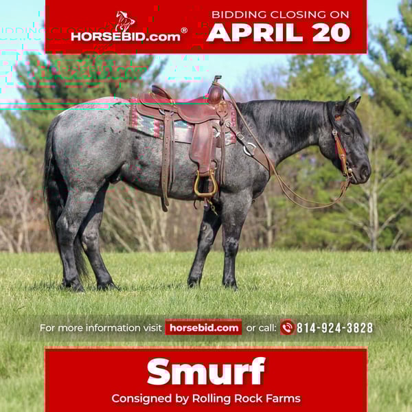 ⚜️𝐭𝐡𝐞 𝓔𝓵𝓲𝓽𝓮 𝐒𝐩𝐫𝐢𝐧𝐠 𝐂𝐥𝐚𝐬𝐬𝐢𝐜⚜️ Happening now thru MONDAY | APRIL 20th - Available EXCLUSIVELY on HorseBid's website! For more details and to register visit: www.Horsebid.com CONSIGNOR CONTACT: Rolling Rock Farms 814-924-3828 LOCATION: Miola, PA BREED: Quarter horse REGISTERED: Yes REGISTERED NAME: Got The Bye Bye Blue COLOR: Blue roan HEIGHT: 15 AGE: 4 GENDER: Gelding If you are looking for a beautiful, gentle, and well minded young gelding, Smurf is one you will not want to miss. This eye catching blue roan not only stands out in color, but also in his kind demeanor and willing attitude. Smurf has a great mind and is extremely gentle and forgiving, making him a pleasure to be around both in and out of the saddle. In the arena, he rides around quietly with a calm, level head and will carry a nice headset when asked. He trots steady and smooth, lopes slow, collected circles, and picks up both correct leads with ease. He also neck reins and has been started swinging a rope off of him. Outside the arena, Smurf has been extensively trail ridden. He will confidently go out alone or in a group and has been through water and over rough terrain without issue. He handles new environments with a level head and willing attitude. On the ground, Smurf is easy and uncomplicated. He stands quietly cross tied, is good for tacking, bathing, and grooming, and is respectful to handle. He is accustomed to both stall life and pasture turnout. Smurf is the kind of young gelding with the mind, foundation, and disposition to go in any direction, whether you are looking for a trail partner, ranch horse, or an all around prospect. If you would like to check out Smurf or have any questions please feel free to contact Ethan at (814) 924-3828