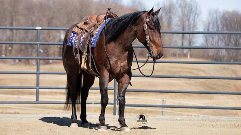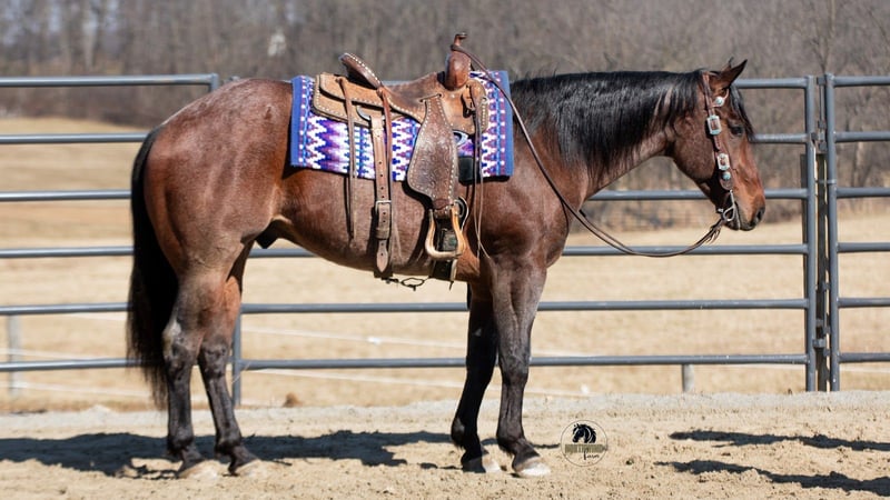 ℳ𝒶𝓇𝒸𝒽 ♦️𝐑𝐈𝐃𝐄𝐑'𝐒 𝐂𝐇𝐎𝐈𝐂𝐄♦️ Happening now thru MONDAY | MARCH 9th - Available EXCLUSIVELY on HorseBid's website! For more details and to register visit: www.Horsebid.com CONSIGNOR CONTACT: North Wind Farm 330-473-3521 LOCATION: Fredericksburg OH BREED: Aqha REGISTERED: Yes REGISTERED NAME: DH Blue Hancock COLOR: Bay roan HEIGHT: 15.1 AGE: 4 GENDER: Gelding Murphy is a 4 yr old red roan AQHA registered gelding standing at 15.1hh. Murphy is as gentle and quiet as the day is long. He is a complete sweetheart! He has the most gentle soul and easy going personality. He has really good ground manners. He stands well for grooming, tacking up, and for getting bathes. He stands well for mounting as well. He is very safe under saddle, and a great trail mount! He will cross creeks, step over logs and watches his step when going up and down the hills. We had rode him on the and he is traffic safe! He will cross all the obstacles and pull the milk jugs and sled. He is used to being around dogs and atvs. Murphy rides well in the arena, he will pick up both leads, stop, and backs up with no problem. He will ride English as well as Western. He has easy gaits and is fun to ride. He moves off of leg pressure and will neck rein, he can also direct rein as well. Murphy is easygoing and gentle. A great trail companion for everyone! ⭐️North Wind Farm is renowned for its quality trail and all-around horses. Our horses are versatile and can excel in any discipline, making them perfect for riders of all levels. Whether you're looking for a reliable trail companion or a horse that can perform in various disciplines, North Wind Farm has the perfect match for you. Our commitment to excellence and passion for equine care ensures that each horse is well-trained, healthy, and ready to meet your needs. Contact us @ Tim (330)600-8840 Lisa (330)473-3521