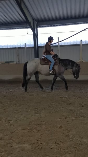 Quarter Horse stallion di 4 anni, Grullo Roan, in vendita. Ha un temperamento tranquillo e coraggioso, è già montato ed estremamente docile sotto la sella. Tuttavia, manca ancora di qualsiasi formazione sotto la sella. Va da solo in passeggiata in natura. È abituato alla vita in paddock e molto socievole. Va a piedi nudi, è stato regolarmente vaccinato, dewormed e ha fatto controllare i denti. Dopo un infortunio all'occhio destro, presenta un piccolo difetto estetico che non causa problemi (vedi ultime foto). È testato per i seguenti DNA: 5 Panel NN IMM NN MYH1 NN PSSM2 NN Un cavallo ideale per chi desidera affezionarsi e lavorarlo autonomamente! Purtroppo, non ho abbastanza tempo per dedicargli alla formazione.