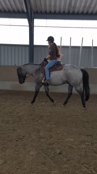 4-year-old Quarter Horse gelding in Grullo Roan for sale. He has a calm, fearless temperament, is backed and very well-behaved under saddle. He goes out alone into the countryside. He is used to being kept in an open stable and is very sociable. He is barefoot, has been regularly vaccinated and dewormed, and had his teeth done. He has a small cosmetic flaw on his right eye, which does not cause any problems. A horse to love and to train yourself! Unfortunately, I do not have the time to further develop him.