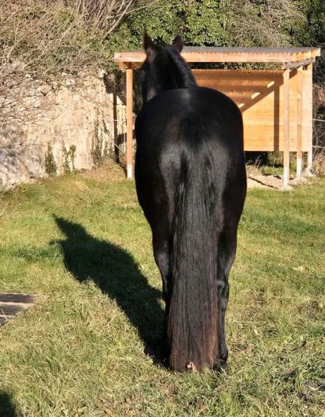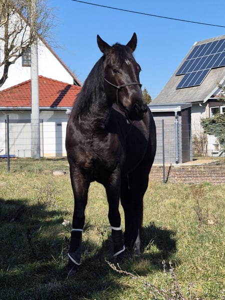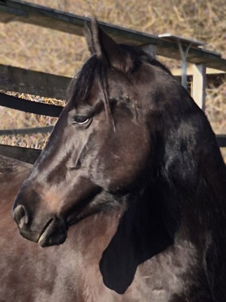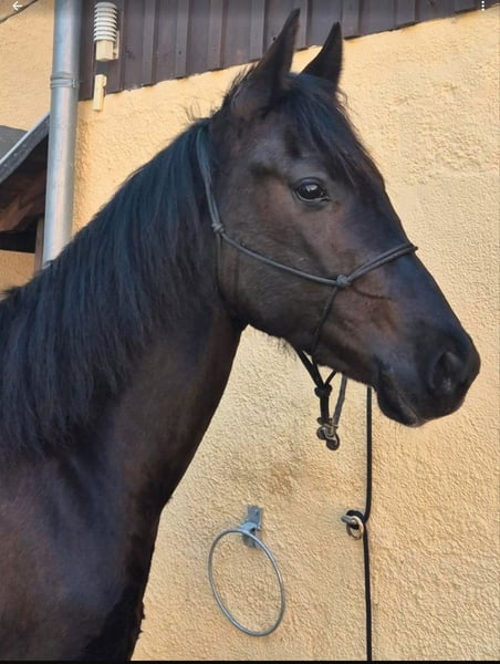 Ein ganz toller, tiefenentspannter junger Quarter Horse Wallach mit Potenzial Sehr eleganter Rappe 4 jährig momentan 1.58m groß Toller Charakter, sehr umgänglich und freundlich! Er wurde schonend angeritten und befindet sich auf solidem Basisniveau. Er geht ab und zu ins Gelände,alleine oder in der Gruppe, was er mit viel Freude und der nötigen Gelassenheit macht. Er hat er ein angenehmes ausgeglichenes Go und ist eher der ruhige,einfach gechillte Typ. Er wird regelmäßig im Natural Horsemanship gearbeitet. Im Umgang ist er absolut klar im Kopf, unkompliziert, hat ein sehr angenehmes ruhiges und verlässliches Wesen. Kumpeltyp. Er kennt Autos, Traktoren, Motorräder, Kühe, Schafe, Hühner und bewegt sich auch am Reisebus absolut unerschrocken und cool vorbei. Steht brav beim Schmied, jährliche Osteo und Zahnarzt sind nur Routine. Volles Papier der AQHA 5- N/N Pannel Test negativ Steht ganzjährig im Offenstall, in gemischter Herde, im unteren Rang. Ab April geht er in professionellem Beritt Er deckt auch größere Reiter sehr gut ab. Er wird definitiv nicht günstiger, mit weiterem Beritt passt sich der Preis dem Ausbildungsstand an. Standort Nähe Dresden/ Sachsen Kein Notverkauf, wir warten gerne auf seinen passenden Menschen. Wir nehmen uns sehr gerne die nötige Zeit für Sie, damit Sie den Wallach kennenlernen können. Dafür berechnen wir eine Aufwandsentschädigung von 50€/Std. Dieser Betrag wird Ihnen beim Kauf natürlich gutgeschrieben. Bei Fragen schreiben Sie uns gerne an!