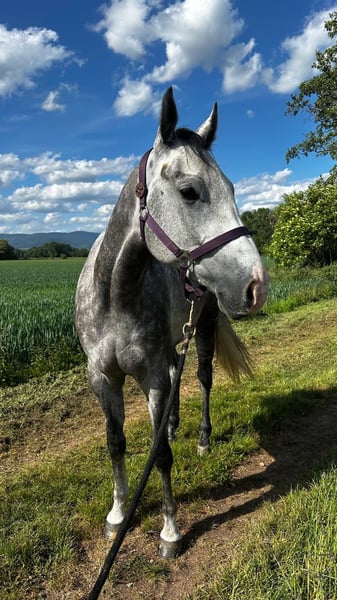 Dieser 4 jährige AQHA-registrierte Quarter Horse Wallach mit einem Stockmaß von 160 cm, fällt nicht nur durch sein Wesen auf, sondern auch durch seine besondere graue Farbe (Gray), die seine Ausstrahlung perfekt unterstreicht. Ein Pferd, das man anschaut – und sofort fühlt. Er wurde sehr schonend und altersgerecht vorbereitet. Kennt Bodenarbeit, Doppellonge sowie Sattel und Gurt und bleibt dabei stets gelassen. Geritten ist er noch nicht – er wartet auf jemanden, der diesen wichtigen Schritt mit Ruhe, Gefühl und Vertrauen gehen möchte. Im täglichen Umgang zeigt er sich brav, aufmerksam und menschenbezogen. Schmied und Tierarzt sind für ihn selbstverständlich und unkompliziert. Seine hochwertige AQHA-Abstammung (u. a. Invitation Only, Radical Rodder, Chips Chocolate Time, Zips Pine Time) bringt beste Voraussetzungen für Rittigkeit, Lernbereitschaft und ein ausgeglichenes Mindset mit. Er ist ein Pferd mit viel Potenzial – aber vor allem mit Herz. Gesucht werden fördernde Hände mit Herz und Können, die Freude daran haben, ein junges Pferd fair aufzubauen und ihm Zeit zu geben. Platz vor Preis.