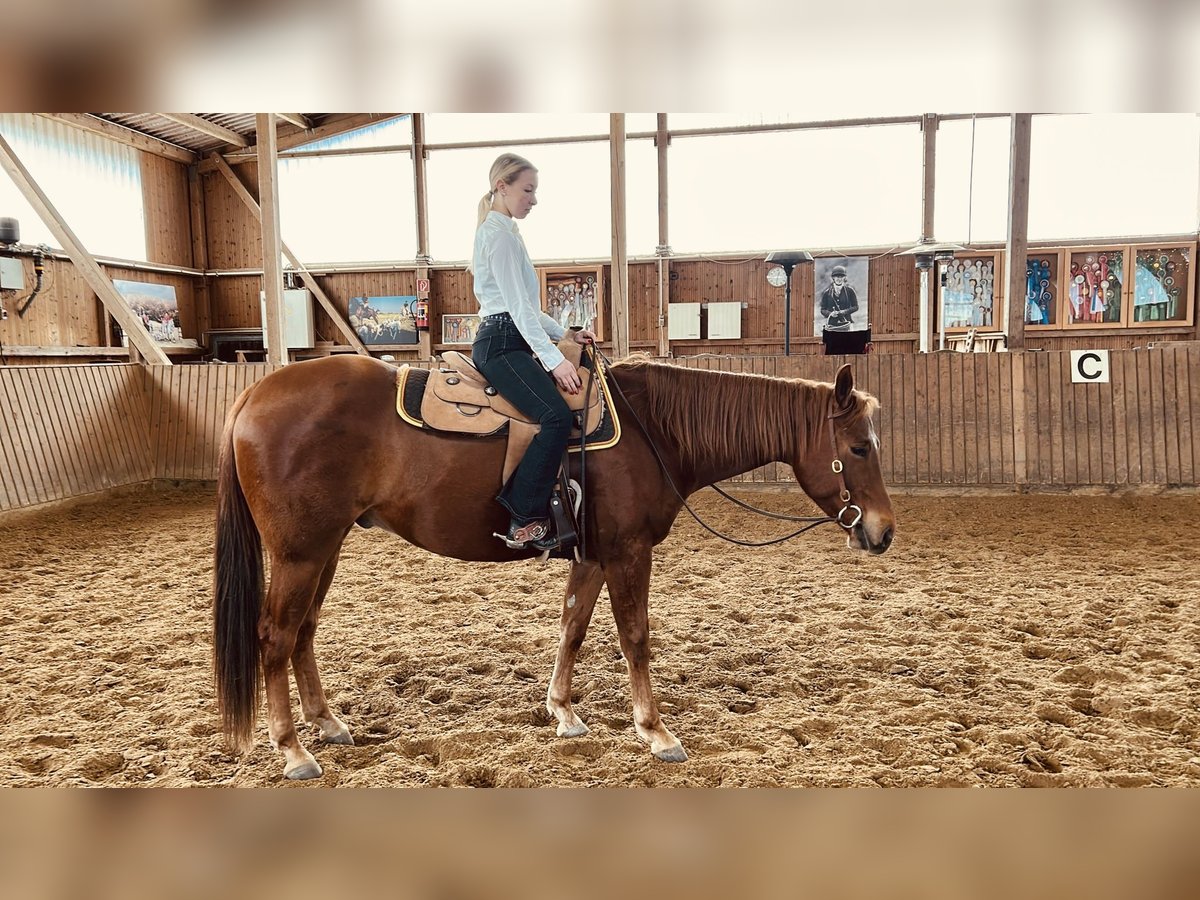 💫A ROCKIN MACHINE💫 Quarter Horse Wallach Geb. 2022 Sire: ROCKIN MY LAZY Dam: PAGE N MACHINE Vegas präsentiert sich unter dem Sattel stets äußerst brav, unerschrocken und zuverlässig – ebenso überzeugt er im täglichen Umgang durch seine ruhige und kooperative Art. Unarten hat er bislang keine gezeigt; vielmehr ist er ein ausgesprochen menschenbezogenes, freundliches Pferd. Die Grundgangarten beherrscht er sicher und ausbalanciert. Damit eignet er sich sowohl für den ambitionierten Sporteinsatz als auch als verlässlicher Partner für den gehobenen Freizeitbereich.