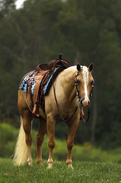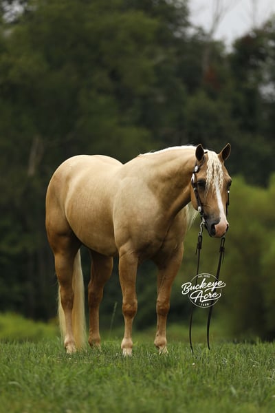 Looking for a horse that turns heads wherever he goes? Meet Monty, a stunning golden palomino gelding with looks, talent, and heart to match. This 2021 model AQHA standing a strong 14.2 hands and is the perfect combination of beauty, balance, and confirmation. Monty is a direct son of Whiz My Nu Chex, a grandson of Hall of Fame and $12 million sire Topsail Whiz, with bloodlines tracing back to the legendary Nu Chex to Cash—an elite pedigree built for performance, versatility, and attention. His bright blaze, expressive eyes, and refined head make him a horse that people notice immediately, but it is his personality that keeps their attention. Monty has proven himself on miles of trails, both alone and with groups, confidently crossing water, stepping over logs, and navigating hills with ease. He has competed in a ranch hand competition as well as a trail course, showing his willingness to work and steady mind in different environments. been used to check cows, horses, and fence lines, and has even been roped off of. Our kids have ridden him on the farm, and we have ponied other horses on him, showing that he is gentle, steady, and safe for riders of all levels. In the arena, Monty is soft, responsive, and exceptionally well-trained. He has a good one-hand neck rein, knows his leads, executes a correct lead change, spins accurately, and side passes, including to the mounting block for easy mounting. He has been ridden Western, English, bareback, and even bridle less, and his gaits are incredibly smooth—from walk, trot, extended trot, to lope—with excellent transitions. Monty responds willingly to cues, making him a pleasure to ride for beginners and experienced riders alike. Monty is versatile beyond riding. He is easy-going and does not need to be ridden every day to stay the same. He is first to greet you at the gate, calm and cooperative in the barn, wash bay, and with the farrier, and he absolutely loves attention and scratches behind the ears. He is desensitized to tarps, jugs, whips, and gunfire, and is traffic safe on state roads. Whether your goal is showing, trail riding, ranch work, or simply having a horse that brings a smile to your face every time you see him, Monty is a horse that does it all. With his perfect combination of pedigree, training, temperament, and eye-catching presence, he is truly one-of-a-kind. If this sounds like the horse you have been looking for, please feel free to reach out to Duane @ 330-231-2324 for more information or to schedule a day to see him in person.