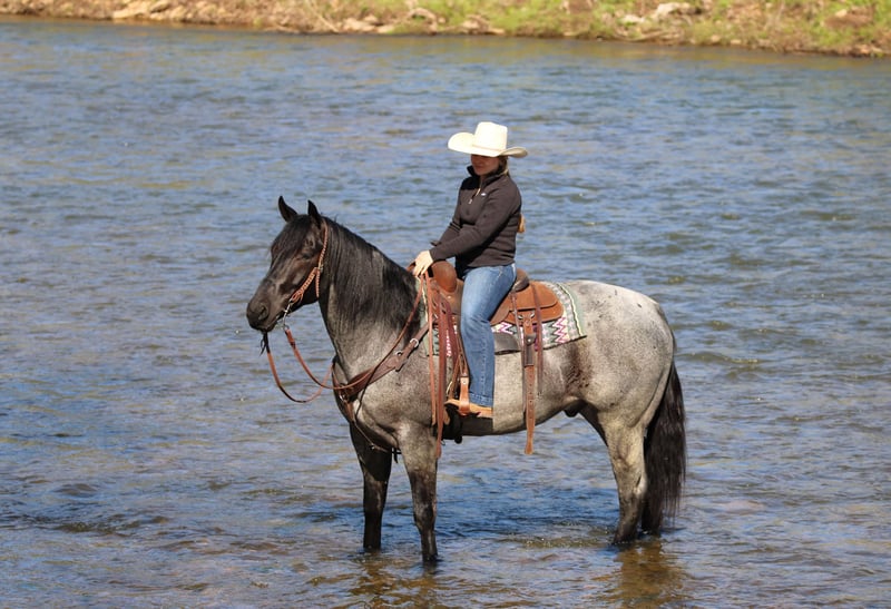 ▪️▫️◾️𝐭𝐡𝐞 𝑴𝒂𝒚 𝐒𝐞𝐥𝐞𝐜𝐭◾️▫️▪️ Happening now thru MONDAY | MAY 4th - Available EXCLUSIVELY on HorseBid's website! For more details and to register visit: www.Horsebid.com CONSIGNOR CONTACT: KS Select Horses 814-229-3290 LOCATION: Clarion, PA BREED: QH REGISTERED: Yes REGISTERED NAME: MP Little Blue Kitty COLOR: Blue Roan HEIGHT: 15.2 AGE: 4 GENDER: Gelding Mp Little Blue Kitty or as we call him around the barn Blue is a True Blue Roan Registered Quarter Horse Gelding. Wow Check Him Out!! Blue is as good looking as they come! Not only is he super good looking but he rides the very best and has a super good mind and is very quiet and gentle to ride and be around making him the whole complete package! He is registered with the American Quarter Horse Association and was foaled in 2022 making him 4 years old. Blue has a bright future and has his whole life ahead of him. He may be 4 years old but will ride and act like a horse 3 times his age. You will love his training and how gentle he rides. He has a great one hand neck rein. Good stop and side pass. Super smooth trot and slow easy to sit lope. Blue rides great in the arena or outside in the open. Lopes nice circles in the arena and hits his correct leads each way. Blue has been trail ridden many miles outside and is a great trail horse. Watch us ride him in the creek and the obstacles. He never refuses or hesitates goes wherever you ask him and never complains. Blue is also good when it comes to working cattle on the ranch. We have rode him down town and he is good with traffic and busy environments. If you want to ride in first class and have one of the prettiest horses to ride then Blue is the one for you. Dont miss out on Blue! Horses like him are very hard to find. Blue just had a health exam on April 20th which he passed with flying colors. We can help arrange delivery anywhere in the United States. Call or Text Kris at 814-229-3290. Thank You and God Bless