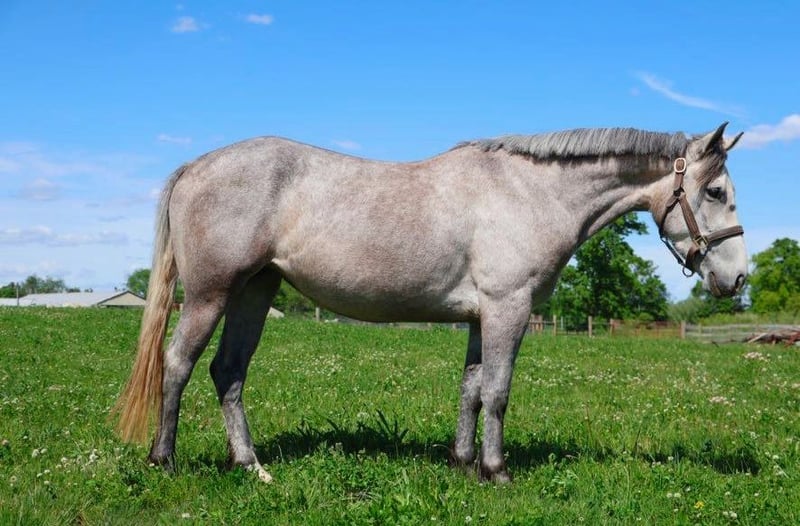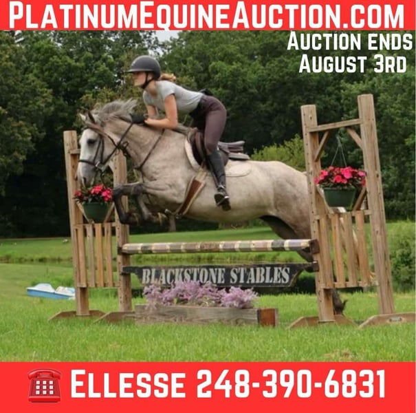 ONLINE AUCTION Place your bids at www.PlatinumEquineAuction.com Starting Bid $3500 Auction ends August 3rd, 2025 Need a new saddle? Check out White Rock Saddles on our website or Facebook Meet Betty Boop! This adorable dappled grey mare stands 14hh at 4 yo, with a big body. She is a Welsh Quarter X. Betty has beautiful conformation and a mind to match. She is an elegant mover and is very light on her feet. Betty a total doll on the ground and plays well with others in turn out. Betty walk trot and canters with ease, she’s knows her leads and her breaks are good. She has seen the trails, woods, water and wildlife. She’s coursing around at 2ft with plenty of scope to make it to the opens. She jumps in beautiful form! Betty is ready to hit the show ring! She loves the kiddos and is a very forgiving type of ride. She has easy changes that will be auto in no time! Betty is currently working in an English lesson program and she’s a favorite among the kids. Betty has also been trail ridden and has an incredible mind! She can be finished any way you like! Give us a call to meet her. Betty Boop lives in Howell, MI 48855 please give me a call or text Ellesse Schwartz 248-390-6831. ONLINE AUCTION Place your bids at www.PlatinumEquineAuction.com Starting Bid $3500 Auction ends August 3rd, 2025 Need a new saddle? Check out White Rock Saddles on our website or Facebook