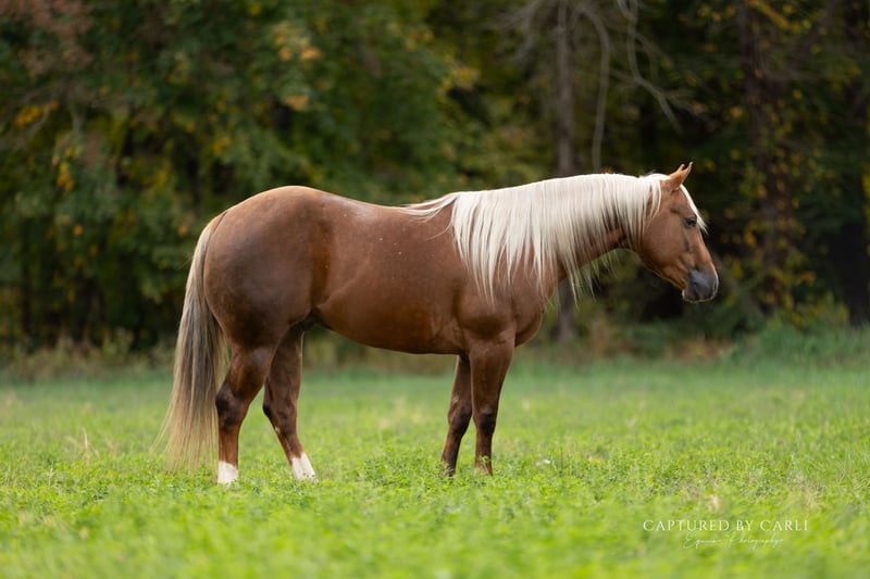 𝐉𝐨𝐧𝐞𝐬 𝐅𝐚𝐦𝐢𝐥𝐲 & 𝐕𝐞𝐫𝐬𝐚𝐭𝐢𝐥𝐢𝐭𝐲 𝐇𝐨𝐫𝐬𝐞𝐬' 🍂𝑳𝒆𝒈𝒆𝒏𝒅𝒔 𝒐𝒇 𝒕𝒉𝒆 𝑭𝒂𝒍𝒍🍂 Happening now thru MONDAY | DECEMBER 8th - Available EXCLUSIVELY on HorseBid's website! For more details and to register visit: www.Horsebid.com CONSIGNOR CONTACT: Jones Family and Versatility Horses 618-535-9966 LOCATION: Lewistown, IL BREED: Quarter Horse REGISTERED: Yes REGISTERED NAME: GYPSY WITHA TWIST COLOR: Palomino HEIGHT: 14.1 AGE: 4 GENDER: Gelding We really don’t know where to start with this guy, except that he sets the bar for the type of horse we dream of.. if you want as close to perfect as it gets, this is the one - and we don’t say that lightly. Introducing Sunny, 4 years old and standing 14.1 hands, this golden gentleman is everything we believe a great horse should be. He is as wide as he is tall, built with tremendous substance, quality, and presence. His glowing dark palomino coat, beautiful white mane and tail, and statuesque build turn heads everywhere he goes, but it’s his old soul and temperament that make him unforgettable. Sunny radiates kindness, you can see it as soon as you look at him. He is soft-eyed, genuine, and has a way of melting your heart the moment you’re near him. He is steady, safe, and honest - the type that stays with you, never leaves you guessing, and never offers a single ill thought. He is straightforward, forgiving, and unwaveringly dependable whether you have ridden your whole life or are stepping in the saddle for the first time. Ride him on a loose rein, or ride him into pressure as he stays true either way. Sunny has a nice consistent stop, great turnaround and beautiful transitions, and circles. He rides beautifully off your seat, and has been handled and enjoyed by a variety of different riders of all levels. He carries himself with class and gives you chills with his presence and feel. Sunny is confident alone or in a group, easy to catch, and happy anywhere you place him. He gives his rider that reassuring feel that makes you feel secure and confident. His resume is deep and versatile he’s been used in ranch settings, trail ridden, camped with, hauled to parks, and exposed to endless environments. He handles obstacles with confidence, is great with ropes, flags, tarps, gunfire, traffic, farm equipment, livestock, and commotion of every kind. He has a pretty turnaround, a good stop, and all the makings to excel in ranch versatility, ranch riding, roping, or simply just being that once in a lifetime family horse you can trust in every situation. Sunny settles easily, hauls with class, and takes new places in stride. Whether you want a partner to show, work, or honestly - just proudly admire in your pasture every morning, he is the kind you will build your life around. It will be incredibly hard for us to let this one go. We are proud and humbled to offer him. Sunny is the pure definition of a unicorn, and we know he will go far and bless the life of the lucky family that gets him. We could write pages and still never capture all the good this horse is. Some horses you sell. Some horses mark your heart forever and set the standard for those that come after. Sunny is one of those. We can guarantee the only regret he’ll make you have is not buying him.