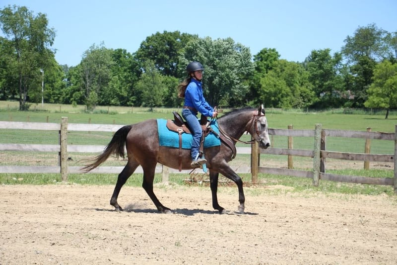 ONLINE AUCTION Place your bids at www.PlatinumEquineAuction.com Starting Bid $3500 Auction ends July 7th, 2024 Need a new saddle? Check out White Rock Saddles on our website or Facebook! Color M Color Me Smart is a stunning, dapple grey with a commanding presence. He is a 14.1hh, 2021 registered APHA gelding that is good enough quality to be competitive in reining and yet gentle and kind enough for the entire family. He is well minded with no buck or bolt. A true gentleman. There is nothing he can’t do, inside or outside the arena. Check out his pedigree; his lines go back to colonial freckles, play gun, and smart little leana. This is our go to horse for adults and kids as young as 6 years old. Smarty has been started with all natural horsemanship methods. He has been used in the arena on a reining pattern. He can lope small circles with his head a foot off the ground in both directions. He has a big sliding stop and an easy, fast spin. Smarty can do flying lead changes and neck reins. Riding without a bridle? No problem! Smarty can steer with your legs! He does quick turn arounds, crosses tarps, and doesn’t mind the flag. He loves the water and will cross any river or swim in the the lake. Smarty will even stand patiently while the little ones climb on. He is so trustworthy the kids saddle and bridle him with ease. You can’t put a price on a safe horse that leaves you worry free. Ready for a trail ride? Grab Smarty! He will cross rivers, bridges and deadfall. He has been ridden along the highway and is good with all the cars, trucks, and farm equipment. He has been ridden in the mountains and open fields. Smarty is ready for round up day!! He has been used to gather cattle and loves to work. He has worked at the stockyards, brandings and drug calfs to the fire. He can work the gate like a champ. He has checked hundreds of miles of fence. His demeanor at the barn is as easy as they come. He comes to the gate to be caught and loads the trailer with ease. He is easy to saddle and bridle and doesn’t mind a bath. Smarty is easy to haul and go down the road. He isn’t affected by the travel. He stands patiently for the farrier and enjoys the kids braiding his hair after his baths. Smarty is sound 100%. He is ready to go in any direction you want to send him. Smarty has had all the right training and has been exposed to everything possible. He is pleasing to the eyes and is as cool as a cucumber. Don’t miss out on this once in a lifetime chance to bring home your new best friend. Please Call Blackstone Stables Ellesse 248-390-6831. He lives in Howell, MI 48855. ONLINE AUCTION Place your bids at www.PlatinumEquineAuction.com Starting Bid $3500 Auction ends July 7th, 2024 Need a new saddle? Check out White Rock Saddles on our website or Facebook!