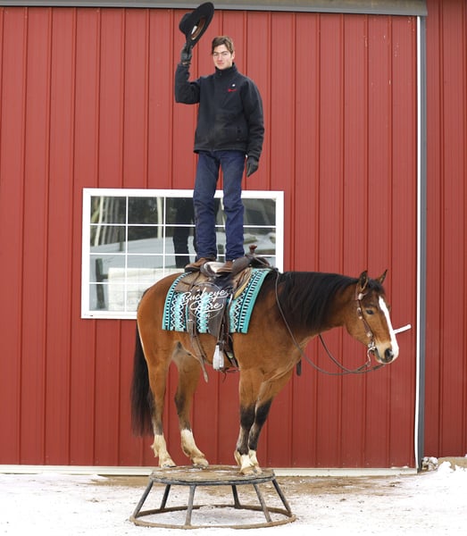 I started my journey in the horse industry in 1995 when I purchased my very first pony at 11 years old. I spent an entire year devoted to training, riding,, and teaching him fun tricks like laying down, sitting, and bowing. I sold him later that year; the feeling of providing a well trained, well behaved, horse was so rewarding that I felt I wanted to continue to share my gift. In 2007, I married my awesome wife Miriam, and we have been blessed with six incredible children (two daughters and four sons) that participate daily with the operation of the farm. What started as myself and a dream has become the full time commitment of my family, and ten employees. The opportunity to share our horsemanship has been so rewarding. In kind, we have been so blessed to learn from professional experts and knowledgeable friends that have voluntarily poured into us their invaluable years of knowledge. Our program has developed, changed, and grown along the way to ensure that we are producing a quality horse that we know we can stand behind. We start by carefully evaluating each horse before purchase. We specialize in quality quarter horses, draft crosses, and also Friesian and Gypsy crosses, from performance to trail riding to leisure. After selection, we take the horse through our groundwork program to get connected with them as individuals. We take them through obstacles and trail ride them, exposing them to anything they may ever encounter. Then, we give the horses a break for up to one month. This allows us to see how the training will stick with them. If they come back in the same place they were before the break we know they are ready to move through the rest of the program and become finished Buckeye Acre Farm horses, learning all of the fun crowd pleasing tricks. We feel we have one of the best soundness guarantees in the business, and we will stand behind that. This has been an awesome journey, and God continues to bless and humble us each and every day. All of us, from our children to our employees, want to provide the best quality horses that you and your families will enjoy for years to come. Over the years we have experienced that the horse market changes, but also that a quality horse is always in high demand. If you see a horse that meets your needs, please reach out to us. I look forward to your call, and to speaking with you personally about your next equine partner. May God bless your day.
