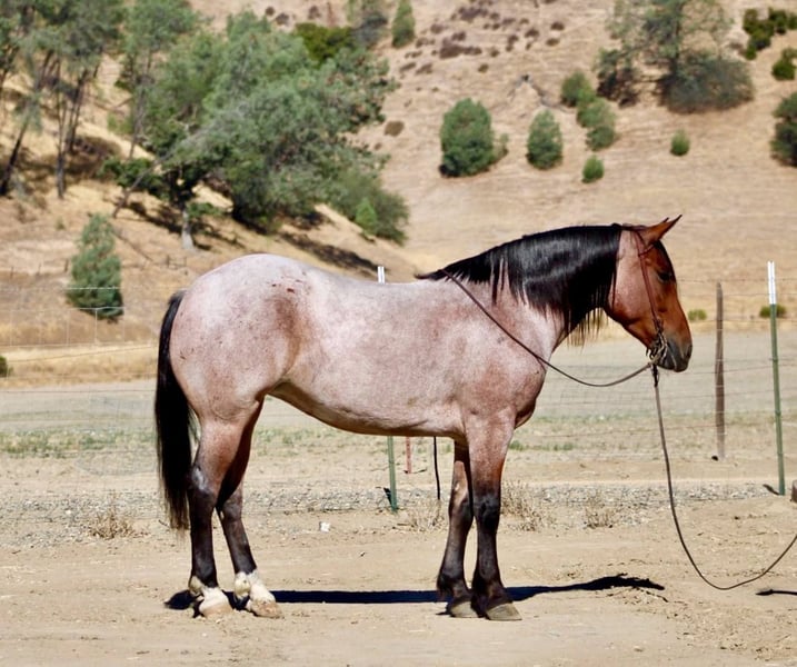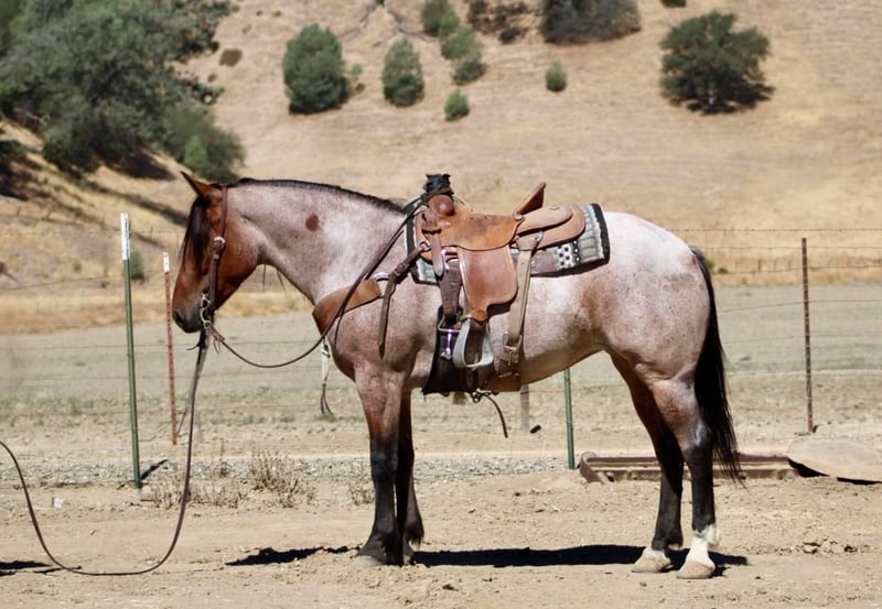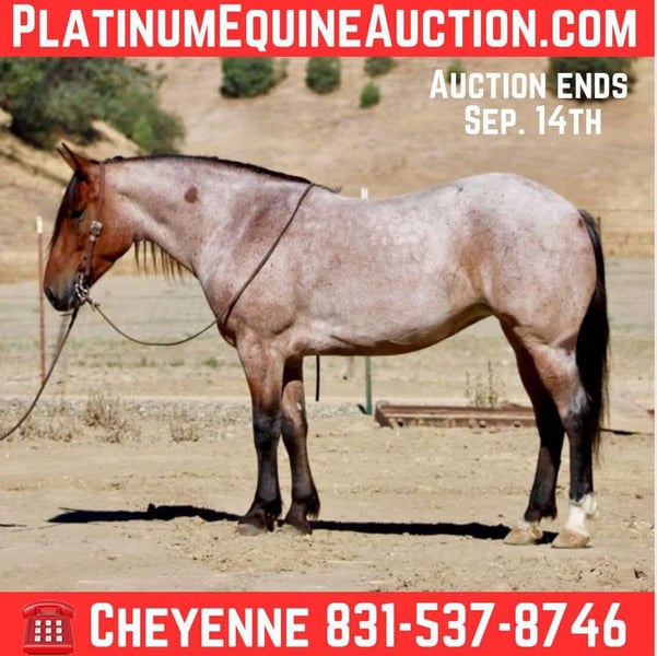 ONLINE AUCTION Place your bids at www.PlatinumEquineAuction.com Starting Bid $3500 Auction ends September 14th, 2025 Need a new saddle? Check out White Rock Saddles on our website or Facebook Bandita is a 4-year-old, 14.2 hand roan mare that is as solid and eye-catching as they come. Built thick, strong, and correct, she’s got big bone, great feet, and the kind of foundation that makes her ready for a lifetime of work. Bandita has been ranched born and raised, being a dignified ranch horse, handling every chore thrown her way. From gathering cattle to roping in the pasture, she is dependable and confident. If there’s a job horse back, you can get it done on Bandita’s back! She is a true cowboy’s dream, whether you’re looking for a hardworking partner, a prospect to finish in the arena, or a reliable all-around ranch horse, Bandita checks all the boxes. She’s also been started out of the team roping box and is showing tons of promise as a rope horse prospect. She hunts the corner heeling, and is strong to the horn. Out on the trail, she’s steady, sure-footed, and has the stamina to go all day long, making her a trustworthy partner for long rides in any terrain. In the arena, she’s soft in the bridle, neck reins, stops, and lopes balanced, pretty circles with ease. Bandita is not a marish mare; she’s smart, kind, and always willing to please. Show her something once, and she’ll come back the next time with confidence like she’s been doing it for years. She’s shod all the way around, great for the farrier. She hauls great, and gets along with other horses. Whether you’re looking for a dependable ranch horse, a rope horse prospect, or a versatile partner with a great mind and foundation, Bandita is the kind you don’t come across often. Come see her for yourself! She is located in Bitterwater, CA. For more info please contact Cheyenne Rey at 831-537-8746. ONLINE AUCTION Place your bids at www.PlatinumEquineAuction.com Starting Bid $3500 Auction ends September 14th, 2025 Need a new saddle? Check out White Rock Saddles on our website or Facebook