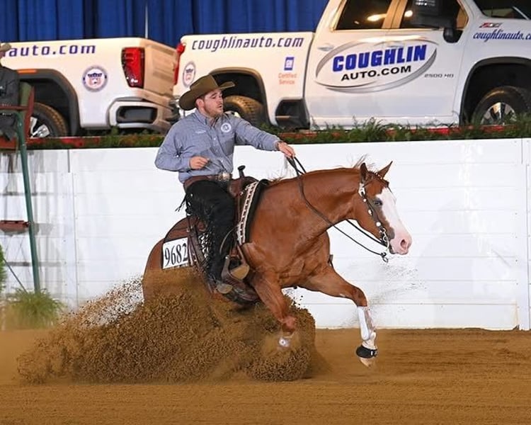 ⚜️𝐓𝐇𝐄 𝐅𝐀𝐋𝐋 𝐇𝐄𝐑𝐈𝐓𝐀𝐆𝐄 𝐂𝐋𝐀𝐒𝐒𝐈𝐂⚜️ Happening now thru MONDAY | NOVEMBER 3rd - Available EXCLUSIVELY on HorseBid's website! For more details and to register visit: www.Horsebid.com CONSIGNOR CONTACT: Couture Caballo 972-310-0002 LOCATION: Gainesville, TX BREED: AQHA REGISTERED: Yes REGISTERED NAME: Place Ur Bets COLOR: Sorrel HEIGHT: 14.3 AGE: 4 GENDER: Gelding Meet Place Ur Bets aka “Cuervo” A 2021 AQHA Sorrel Gelding by the $4.5 Million Dollar Sire Colonel Shining Gun and out of Eyedbeyourdreamgirl—a proven Magnum Chic Dream daughter owned by Clinton Anderson whose foals have already earned over $25,000. Trained by Ben Beckett Reining Horses and shown this year by Pond Hill Performance Horses, this gorgeous partial blue eyed gelding has proven his credibility in the reining pen, as well as the versatility too! Piloted by Bar MG Ranch, Cuervo recently claimed the 2025 Green Horse High Point Champion title earlier this month. He marked a 73.5 in trail, topped the ranch riding, and debuted impressively in the cow work with a third place finish. Quiet, sound, and sweet natured, “Cuervo” is one of the prettiest moving Shining Guns you’ll find. His fluid, unrestricted gait and comfortable way of going make him equally enjoyable for a youth, amateur, or seasoned open rider. He’s the kind that meets you at the gate every time—effortless & enjoyable to operate, honest in the pen, and enjoyable to ride day in and day out. The more time you spend with him, the more you realize—this one’s the total package. Sound, barefoot up front, no maintenance, no vices, and UTD on all care. Selling with a fresh set of x rays & vet statement. Offered exclusively by Couture Caballo, this is one investment you won’t second guess... a smart BET on a proven partner built for a lifetime of enjoyment.