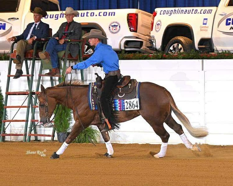 ♦️ 𝐃𝐚𝐬 𝐀𝐌𝐄𝐑𝐈𝐂𝐀𝐍 Fall Classic ♦️ Findet jetzt bis MONTAG, 20. OKTOBER, statt – exklusiv auf der Website von HorseBid! Weitere Details und Anmeldung unter: www.Horsebid.com VERKÄUFERKONTAKT: Premier Horses LLC 0176-12582580 STANDORT: Buffalo, Missouri ZUCHT: Quarter Horse ZUCHTBUCH: Ja NAME IM ZUCHTBUCH: Gunna Bet On Red FARBE: Sorrel (Fuchs) HÖHE: ca. 1,52 m (14,3 hh) ALTER: 4 Jahre Geschlecht: Wallach Wenn Sie erstklassig unterwegs sein möchten, sollten Sie Rocky auf keinen Fall verpassen! Er ist sowohl im als auch außerhalb der Arena außergewöhnlich – nehmen Sie ihn einfach mit an den Ort Ihrer Wahl. Überall, wo Sie mit ihm reiten, werden Sie den Eindruck machen. Er ist ein einzigartig gefärbter Sorrel mit perfekten weißen Socken und einem markanten Blaze sowie Highlights im Mähne- und Schweifbereich. Konformatorisch ist er makellos: mit einem großen, kräftigen Hüftbereich, starken Schultern und einem zarten Kopf. Rocky ist der Nachkomme des legendären Gunnatrashya NRHA LTE: 236.457 USD, mit Nachkommen-Einnahmen von über 16 Millionen US-Dollar. Seine Mutter, Baby Red Gaylena, ist ebenfalls beeindruckend: Ihre Nachkommen haben Einkünfte von über 107.644 USD und wachsen stetig! Rocky verfügt über enormes Talent: Er erzielt solide Noten im Reining. Er ist ein tief stoppender, leicht wechselnder Führstrick, läuft großartige Kreise und macht nahtlose Spins. Es macht einfach Spaß, ihn zu zeigen! Rocky ist NRHA-Geldverdiener und bereit, weiter zu gewinnen. Er gewann die TNRHA Rocky Top Reining Novice Horse Open L1 mit einer 72. Außerdem erreichte er den 3. und 4. Platz bei den TNRHA Rock N Roll Reining Klassen in Taylor Automotive Open Futurity L2, L3 und L4 mit einer Punktzahl von 142,5. Bei der 100X Reining Classic NARS Futurity Open L2 belegte er den 13. Platz mit einer Punktzahl von 214. Rocky beeindruckt die Richter und zeigt konstant gute Leistungen im Showring. Auch in den Anfänger- und Rookie-Klassen wäre er hervorragend! Sein Pedigree und seine Erfolge sprechen für sich, doch vor allem hat er einen großartigen Geist – schwer zu finden bei einem Pferd. Rocky ist geduldig, freundlich und willig, zu gefallen. Unsere 6-jährige Tochter reitet ihn problemlos, ihr Lieblingsmanöver ist der „Slide Stop“, wie sie es nennt! Auch im Gelände macht er großen Spaß: Er geht durch Wasser, erklimmt und erklimmt Abhänge und bewältigt anspruchsvolles Terrain mit Leichtigkeit. Er macht auch bei Posten- und Hindernis-Überquerungen eine gute Figur. Er bleibt stets ruhig und ist ein echter Genuss, in seiner Nähe zu sein. Rocky ist auch gut darin, Rinder zu sortieren und zu sammeln, was ihm ebenfalls große Freude bereitet! Er vereint alles, was man sich wünschen kann, in einem Pferd. Wenn Sie ganz nach oben wollen, kann Rocky Sie dorthin bringen. Er liebt es, die Trails zu erkunden, im Showring zu glänzen und ist einfach ein tolles Pferd für zuhause. Jeder sollte ein Pferd wie Rocky in seinem Leben haben – verpassen Sie nicht diese einmalige Gelegenheit!