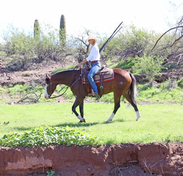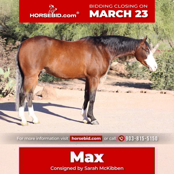 ⚜️𝓽𝓱𝓮 𝐆𝐎𝐋𝐃 𝓢𝓮𝓵𝓮𝓬𝓽⚜️ Happening now thru MONDAY | MARCH 23rd - Available EXCLUSIVELY on HorseBid's website! For more details and to register visit: www.Horsebid.com CONSIGNOR CONTACT: Sarah McKibben 903-815-5150 LOCATION: Cave Creek, AZ BREED: Quarter Horse REGISTERED: Yes REGISTERED NAME: Maxxxed out COLOR: Bay HEIGHT: 14.3 AGE: 5 GENDER: Gelding Full of personality, loaded with talent, and just plain fun to have around, Max is the kind that makes your dreams come true. I bought him as a 2-year-old, and he’s been one of my personal horses ever since. Every step of his training has been done right, never rushed, never skipped. Max has earned right at $2,000 in NRHA reining and has also been shown in AQHA reining, earning 6 points. He’s sired by the one and only Spooks Gotta Whiz, the hottest sire in the reining industry with offspring earnings exceeding $13 million, and that also makes Max Riata Buckle eligible. In the arena, Max is a total standout measuring 14.3 hands sporting his striking blue eyes, bold bald face, and silver tail. He’s got the full reining package, dynamic spins, effortless lead changes, flawless circles, and a big, powerful stop. His transitions are smooth and precise, and he’s incredibly user-friendly to ride. Whether you’re looking to keep showing in reining, step into ranch riding, or versatility events, Max is ready to shine. Outside the arena, Max is a rock star. I’ve worked cattle and lightly roped on him, and he handles it all with confidence. He’s sure-footed, brave, and one of the most reliable trail partners you could ask for. I’ve ridden him all winter through our busy tourist town, banners, loud music, traffic, motorcycles, you name it nothing fazes him. He’s steady in any situation and settles right in wherever you haul him. Max glides through rough, rocky terrain like a mountain goat, navigates easily around prickly cactus and absolutely loves water. He will be your rock-solid partner who truly enjoys the great outdoors and soak in the scenery. He has the endurance to go all day too! Max is one of the smoothest and most comfortable horses I have ridden. He’s got a jog you can sit all day and can lope in the palm of your hand. He rides western, English, and bareback. He willingly goes over jumps and has mastered all the arena trail obstacles including poles, the bridge, and the drag. With a kind eye and a gentle soul, he’s the horse that wants to be part of everything you’re doing. He enjoys the quieter moments just as much as the adventures, grooming sessions, scratches, and simply standing by your side. He bonds deeply with his person and is always ready for attention, making him not only a joy to ride, but a true companion to spend time with. He will be the first one to knicker at you when you walk into the barn. Max is balanced, cadenced, and always gentle, he doesn’t need to be ridden every day to stay broke. He’s trained and he stays that way. If you’re looking for a horse that checks every box for talent, looks, disposition, and heart, Max is the one. He’s been very loved in our barn and will be a hard one to part with. Max comes with a recent pre-purchase vet exam and is UTD on vaccines, shoeing & teeth.