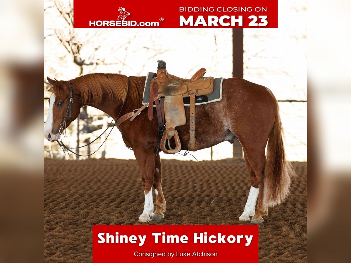 ⚜️𝓽𝓱𝓮 𝐆𝐎𝐋𝐃 𝓢𝓮𝓵𝓮𝓬𝓽⚜️ Happening now thru MONDAY | MARCH 23rd - Available EXCLUSIVELY on HorseBid's website! For more details and to register visit: www.Horsebid.com CONSIGNOR CONTACT: Luke Atchison 479-280-0469 LOCATION: Morrilton, AR BREED: AQHA REGISTERED: Yes REGISTERED NAME: Shiney Time Hickory COLOR: Red Roan HEIGHT: 14.3 AGE: 5 GENDER: Gelding Timebomb is a 5-year-old sorrel gelding that’s been broke right and has the kind of handle that makes him a pleasure to ride. He lopes off smooth, moves easily off leg pressure, and has a big stop when you ask him. He’ll spin both ways with balance and control, making him responsive and fun both in and out of the arena. Timebomb has been started in the calf roping and breakaway and has been hauled some in the calf roping, giving him a solid start in the roping pen. He has good ground manners and stands tied quietly for grooming, saddling, and the farrier. He’s easy to be around and handles new places well. Bred by Hickory Hollytime, Timebomb carries a strong pedigree that adds value and potential for the future. With his foundation, disposition, and ability, he’s a nice young gelding ready to keep progressing in the roping pen or go whatever direction his next owner wants to take him.
