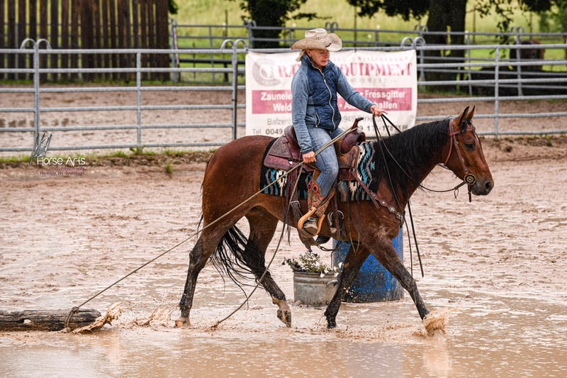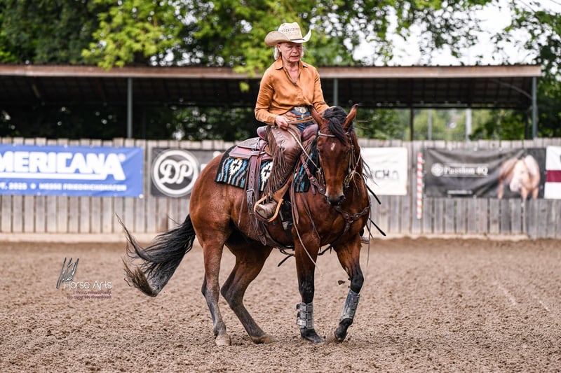 (auf dem Papier Mister Dual Pep sowie Doc O Lena/Freckles Playboy) "Tommy" ist ein super lieber Amateur Wallach, aktuell 1,51 Stm., will stets alles richtig machen. Hat viel Stop, Turn Around, hat Cow Sense und ist vielseitig ausgebildet, stammt direkt vom Züchter. Hat auch schon 4j. seine ersten 3 Versatility Turniere erfolgreich gemeistert und ebenso eine AQHA Amateur Cow Horse gewonnen! Er macht einfach alles mit. Hat einen tollen Charakter und ist wirklich vielversprechend! Stammt aus keiner geringeren Stute als "Justa Little Slipper", 2-fache Europameisterin AQHA Cow Horse, 2016 Ranch Horse Versatility High Point World Wide ! Seine Halbschwester Justa ShinningSparkle hat bereits ein Life Time earning von über 20k und ist super erfolgreich in Cutting (NCHA) & Reined Cow Horse (NRCHA). Der junge Mann freut sich auf eine fördernde Zukunft oder auch auf tolle Ausritte im Gelände, denn hier ist er ebenfalls sehr brav. Weitere Infos od. Videos stehen bei ernstgemeinten Anfragen gerne zur Verfügung. 📞0160/8444813