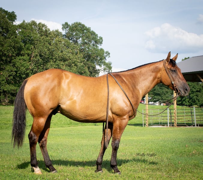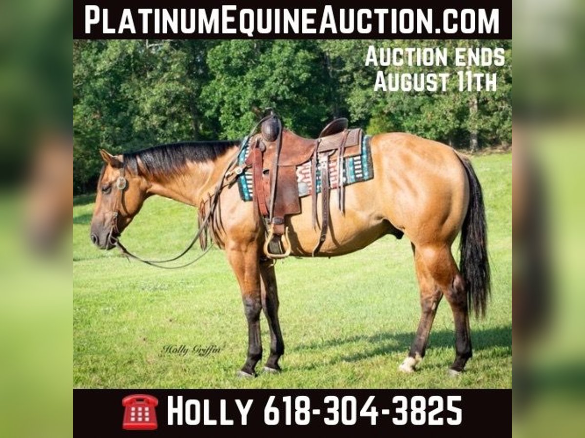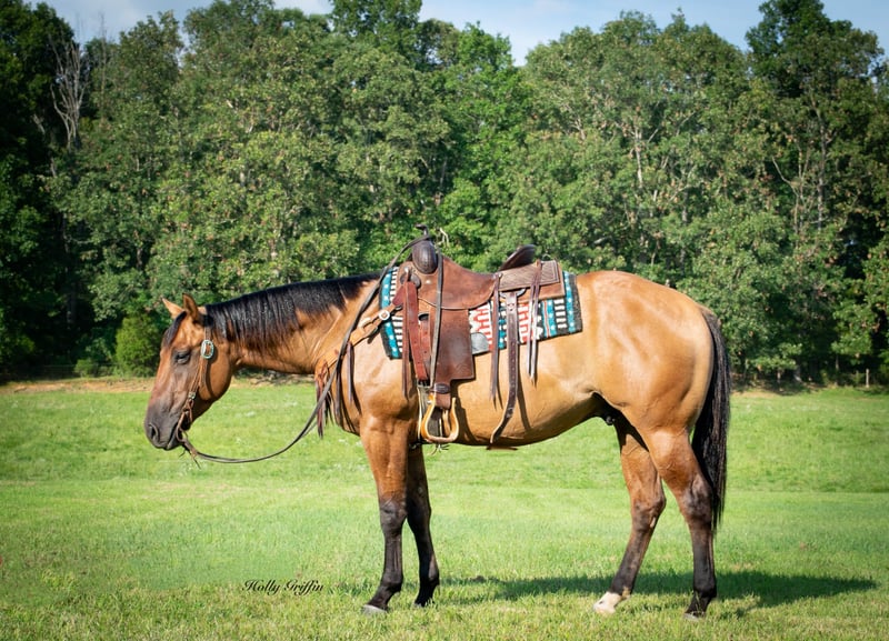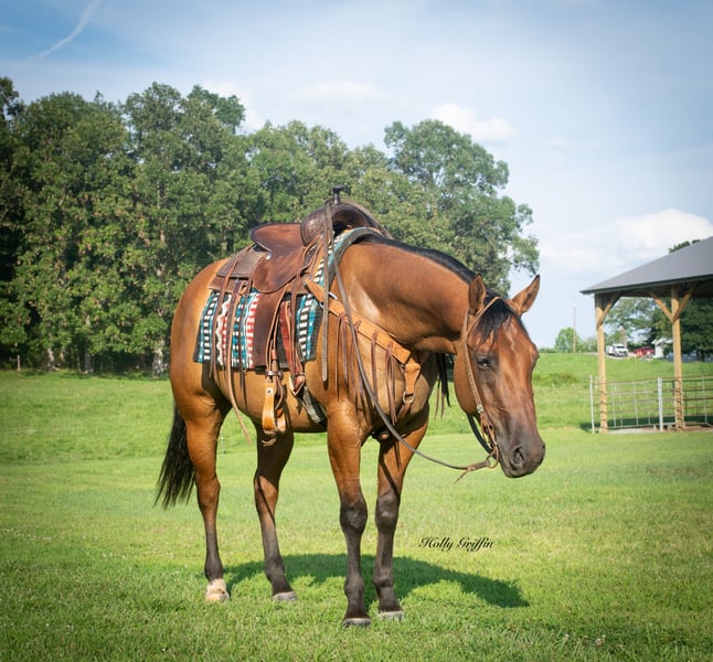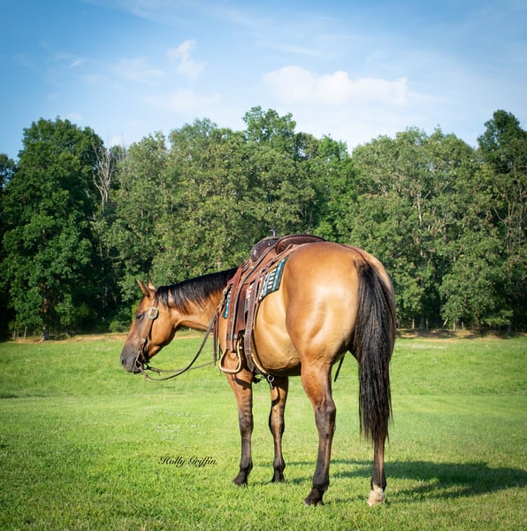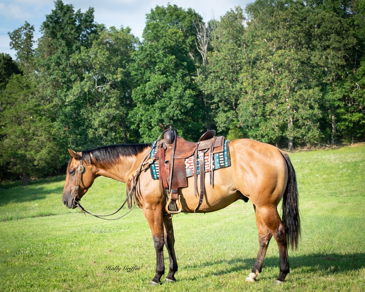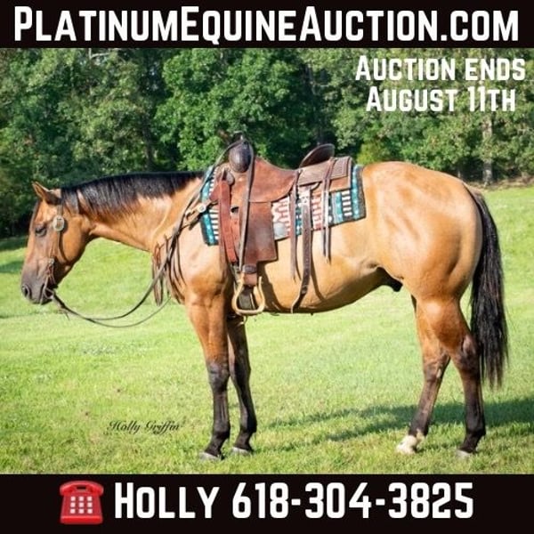 ONLINE AUCTION Place your bids at www.PlatinumEquineAuction.com Starting Bid $3500 Auction ends August 11th, 2024 Need a new saddle? Check out White Rock Saddles on our website or Facebook! Smoke is a 2021 model AQHA Dun Gelding! Smoke stands 15 hands and wide as he is tall! Very good disposition on this gelding and always wants to please! We have had the privilege of owning this gelding most of this year and took him on countless trail rides. He has a very good start for a 3 yr old with lots of outside miles. Very easy keeper in the field or in a stall. He saddles up easy and has never offered to buck or anything silly! Smoke lopes great circles and picks up both leads. He has a very great natural short lope to him. Smoke neck reins and starting to move off leg pressure. Buy this young gelding with confidence he’s ready for his forever home! He has had one set of shoes on but is currently barefoot and sells 100% sound and sane! Located in Greenville Kentucky. Contact Holly Griffin at 618-304-3825. ONLINE AUCTION Place your bids at www.PlatinumEquineAuction.com Starting Bid $3500 Auction ends August 11th, 2024 Need a new saddle? Check out White Rock Saddles on our website or Facebook!