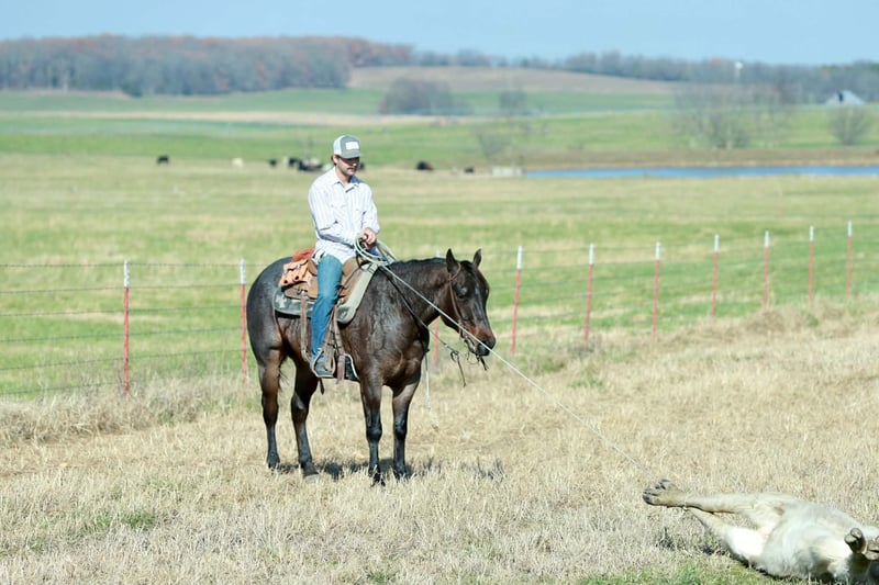 ⚜️ 𝓽𝓱𝓮 𝐇𝐨𝐫𝐬𝐞𝐦𝐚𝐧'𝐬 𝓢𝓱𝓸𝔀𝓬𝓪𝓼𝓮⚜️ Happening now thru MONDAY | DECEMBER 1st - Available EXCLUSIVELY on HorseBid's website! For more details and to register visit: www.Horsebid.com CONSIGNOR CONTACT: Schrocks performance horses 417-772-4142 LOCATION: Purdy, MO BREED: Quarter hirse REGISTERED: Yes REGISTERED NAME: Jk rowdy Ryan COLOR: Bay roan HEIGHT: 15 AGE: 4 GENDER: Gelding “Beefcake” is a 4 year old bay roan AQHA gelding standing 15 hands. His pedigree is versatile and stacked with legends like the great Ronas Ryon and Rowdy Blue Man. Beefcake is absolutely stunning and built like a tank- don’t let his beefy build fool you, he is ATHLETIC. Some people spend a lifetime searching for one as gentle natured as Beefcake! Beefcake is uncomplicated to ride, point & go type of gelding. Plenty of buttons, soft in the face, nice stop and picks up all gaits without hesitation- he is smooth & fun to ride. Moves off leg pressure, stays light in your hands and picks up his leads. NOTHING phases this young gelding: flappy tarps, water, trail obstacles, traffic, etc. He is prepared to handle anything & everything you could possibly throw at him! Beefcake has logged hundreds of miles cruising down trails, pushed cattle and overnight camping to the chuck wagon races. Beefcake is ready to go on with the career of your choosing, the options are endless for a BIG gentle & broke gelding like him! No buck or bad habits. He is an absolute gentleman, stands to be saddled/mounted! Very easy to be around. Someone will love his calm, sweet demeanor as much as we do. He loves attention and to be groomed. Very easy to catch. Great for the farrier. Beefcake is sound, sane & ready to move into your barn!