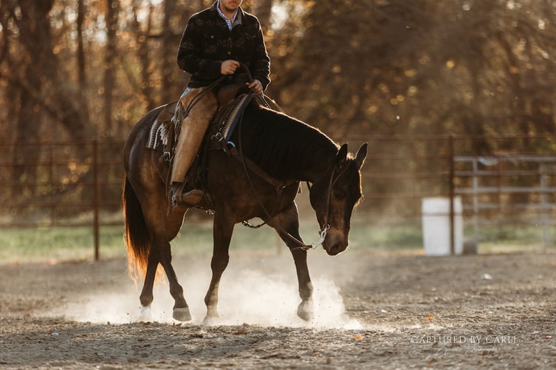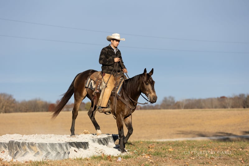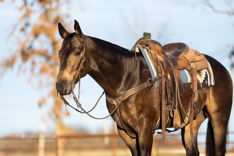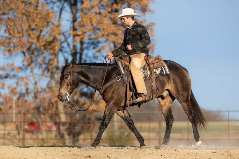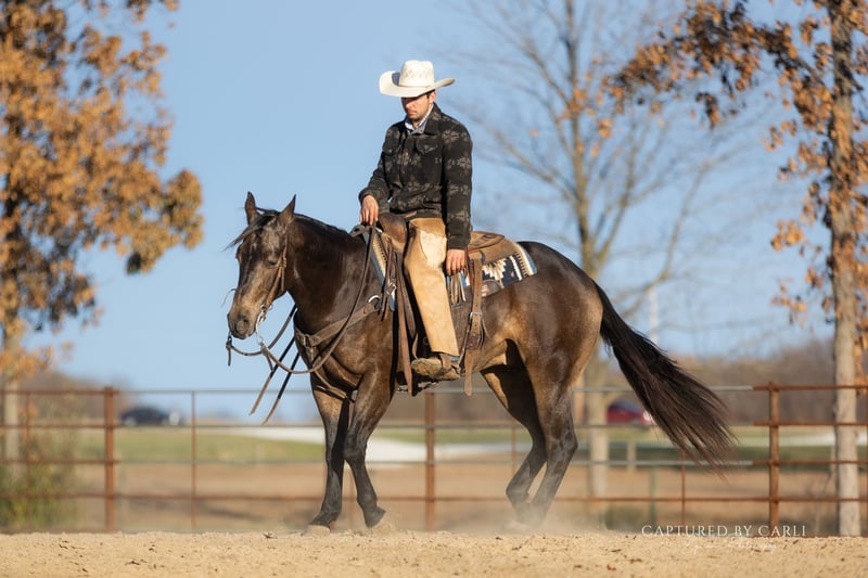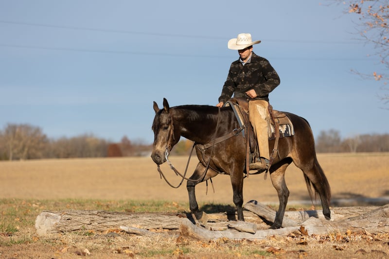 𝐉𝐨𝐧𝐞𝐬 𝐅𝐚𝐦𝐢𝐥𝐲 & 𝐕𝐞𝐫𝐬𝐚𝐭𝐢𝐥𝐢𝐭𝐲 𝐇𝐨𝐫𝐬𝐞𝐬' 🍂𝑳𝒆𝒈𝒆𝒏𝒅𝒔 𝒐𝒇 𝒕𝒉𝒆 𝑭𝒂𝒍𝒍🍂 Happening now thru MONDAY | DECEMBER 8th - Available EXCLUSIVELY on HorseBid's website! For more details and to register visit: www.Horsebid.com CONSIGNOR CONTACT: Jones Family and Versatility Horses 618-535-9966 LOCATION: Lewistown, IL BREED: Quarter Horse REGISTERED: Yes REGISTERED NAME: HQH A GREEDY RIO COLOR: Buckskin HEIGHT: 15 AGE: 4 GENDER: Gelding Introducing Rio, a striking and uniquely marked dark buckskin gelding with bronze undertones, black points, and strong dark feet. He’s the kind you notice with great bone, eye catching shape, and a classy, athletic build that promises ability and longevity. At 4 years old and standing 15 hands, Rio has all the tools and the mind to go far. Rio has been used in a ranch setting, and his foundation reflects real work and good handling. He rides with a smooth neck rein, has a correct turnaround, and deep, willing stop. He walks, trots, and lopes soft and balanced, and shapes pretty circles with ease. He’s already been used to drag calves and has seen the sights of ranch life confident, willing, and taking it all in stride. This young gelding has a bright future in front of him. He would make a standout ranch versatility prospect, and also has the movement, mind, and presence to go on as a rope horse or even cross over into the English ring. He’s correct, athletic, and stylish the kind that gets noticed in any arena. Rio has been ridden by different riders and has a really fun handle and feel! He rides out alone or in a group, and stays steady whether you’re in town, on the ranch, or out on the trail. He’s confident around tarps, gunfire, farm equipment, man made obstacles, and all the everyday commotion that builds a reliable horse. Easy to catch, good minded, and pleasant to be around. He’s sound, solid, and built to last with the kind of willing attitude and athletic ability that opens the door to many disciplines. With Hollywood Dun It and Chicks Beduino on his papers, his pedigree speaks for itself: cow, class, and talent. Rio is a cool, versatile young gelding with the makings of a special one. He has all the ingredients looks, foundation, quiet mind, and future and we are proud to offer him.