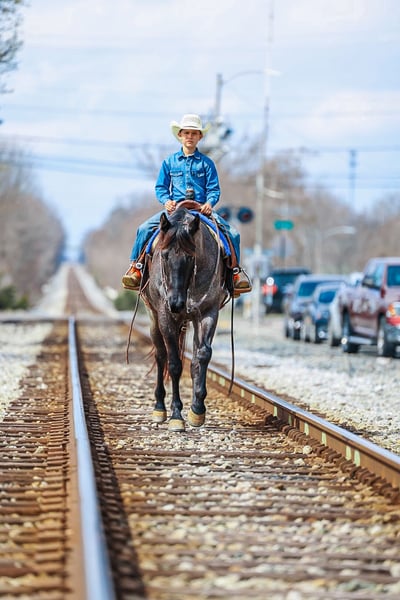 Diesel, 5-letni, 15-handowy, niebieski roan, kasztanowaty AQHA wałach