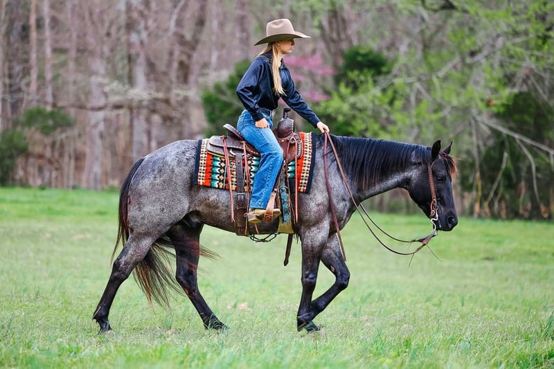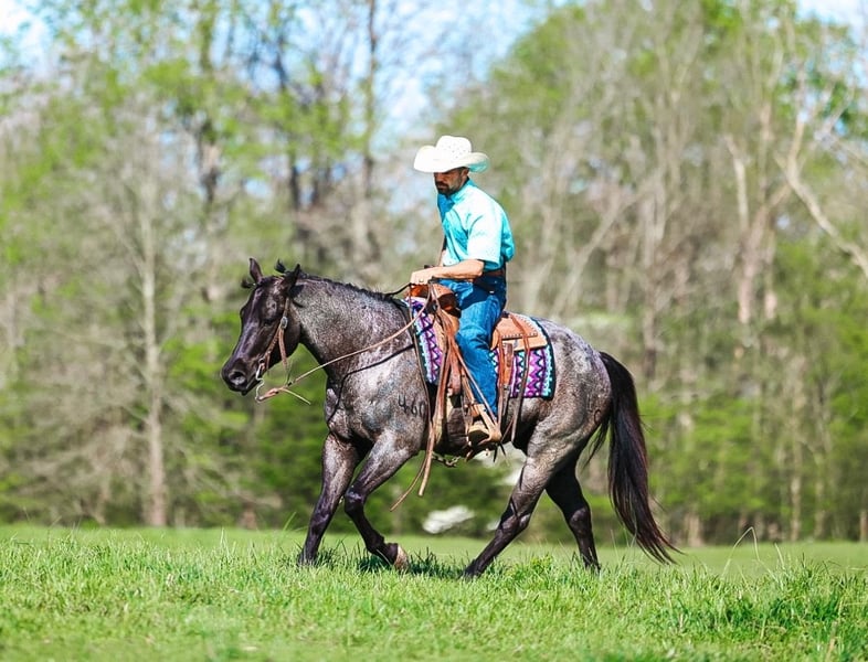 ⚜️𝐭𝐡𝐞 𝓔𝓵𝓲𝓽𝓮 𝐒𝐩𝐫𝐢𝐧𝐠 𝐂𝐥𝐚𝐬𝐬𝐢𝐜⚜️ Happening now thru MONDAY | APRIL 20th - Available EXCLUSIVELY on HorseBid's website! For more details and to register visit: www.Horsebid.com CONSIGNOR CONTACT: Double R Ranch Horses 931-623-1706 LOCATION: Lyles, TN BREED: Quarter Horse REGISTERED: Yes REGISTERED NAME: LC HECKUVA LEO 460 COLOR: Blue Roan HEIGHT: 15 AGE: 5 GENDER: Gelding “Diesel” This is the gelding that you can throw a saddle on any day of the week, point in any direction, and know you’re in good hands! This stunning true blue roan AQHA gelding is as easy on the eyes as he is steady in the saddle. He’s built right, and absolutely gorgeous- with a friendly, gentle personality that makes him so enjoyable to be around! Registered AQHA name, LC HECKUVA LEO 460 with some impressive bloodlines, this 5 year old gelding stands 15 hands tall, has plenty of experience, and a very good mind. Diesel is naturally friendly and loves attention, he is always ready to greet you at the gate. If you enjoy being around horses that are “in your pocket” you’ll love him. He has a gentle soul and a kind eye, and he is ready to be your best bud. He’s easy on the ground, stands quietly to groom, saddle, and mount, and has excellent manners. He loads, ties, bathes, and stands for the vet and farrier without a fuss. Diesel rides soft in the bridle, responds to leg cues, and is smooth and fun to ride! He has been trained to side pass over to pickup his rider on the mounting block, which is handy. Diesel has been a trusted trail partner with us, He’s safe, solid and has a great brain! He’s been one of our go-to choices when new riders want to go out or if we want to pack a kid along. He’s been ridden a little bit of everywhere, out on the trails crossing water, climbing steep rocky hills, checking cows and fences, arena riding, moving steers in the pasture as well as riding around downtown in the busy traffic! Diesel is sure-footed, calm, and confident. New scenery doesn’t bother him, passing wildlife, or navigating through rough terrain, he handles it all with patience and a steady step. It’s easy to relax and enjoy the ride on a nice horse like him. You’ll feel at ease on his back! We have put him in a variety of different situations, with an assortment of riders at different levels, and he remains patient and proves himself reliable and trustworthy every time. He’s also been started roping, and has done a little bit of English, just for the fun of it! Diesel is versatile, well rounded, adaptable, and ready to succeed in whatever direction his next owner wants to take him. Even if that’s a best friend in horse form! It’s hard to find everything Diesel brings to the table- all in one horse. To sum it all up, He’s just plain good. And in today’s world, that’s hard to find! Diesel passed his PPE by Equine Vet Todd Co Animal Clinic with flying colors! 📞 Contact Rachel Vick at 931-623-1706 to learn more or schedule a visit to meet Diesel in person.