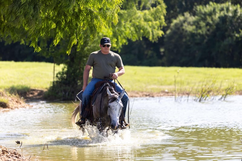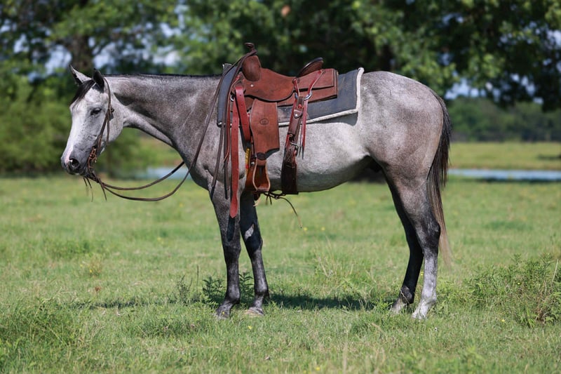 ONLINE AUCTION Place your bids at www.PlatinumEquineAuction.com Starting Bid $3500 Auction ends June 15th, 2025 Need a new saddle? Check out White Rock Saddles on our website or Facebook! Chase is a 4 year old grey gelding that stands 15 hands and is built correct this young gelding is a ranch favorite. Chase is the type of gelding you go catch him knock the dirt off his back and go to work this gelding has a good one hand neck reign handle and is very soft in the face. We have used chase for just about anything and everything on the ranch from doctoring cattle to just simply checking fences he will go all day stay low headed and calm and let you do a days work with ease. The thing we like most about this young gelding is not only can you go use him all day on the ranch but if you want to ride through the trails or down the road with your friends he’s not going to spook or dart off not only does this gelding have a great mind but has the color to match don’t miss him! For any more info please call X5 Ranch Logan 903-368-0922 Located in Canton, TX. ONLINE AUCTION Place your bids at www.PlatinumEquineAuction.com Starting Bid $3500 Auction ends June 15th, 2025 Need a new saddle? Check out White Rock Saddles on our website or Facebook!